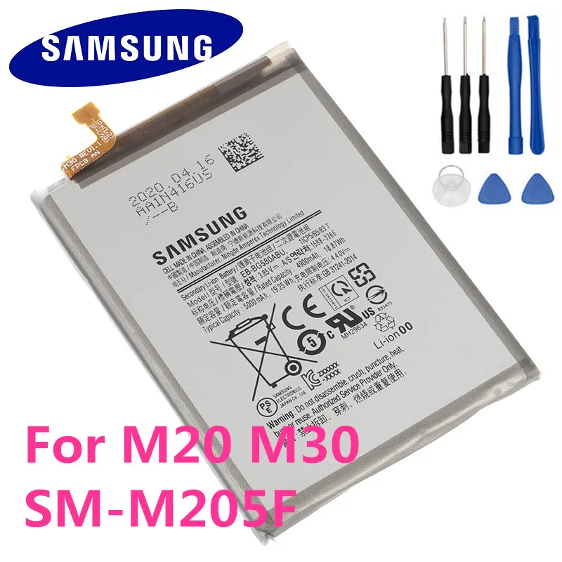 Оригинальный сменный аккумулятор EB-BG580ABU для Samsung Galaxy M20 M30 SM-M205F, оригинальный аккумулятор для телефона 5000 мА · ч
