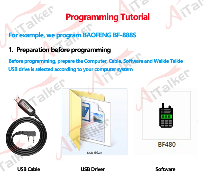 В комплект входит компакт-диск с драйверами, содержащий программное обеспечение, разработанное для радиоприемников BAOFENG UV-5R и UV-3R +, но другие радиоприемники совместимы с программным обеспечением, приобретенным в других местах.