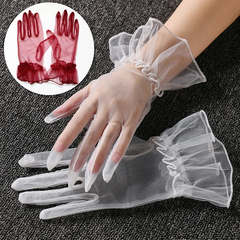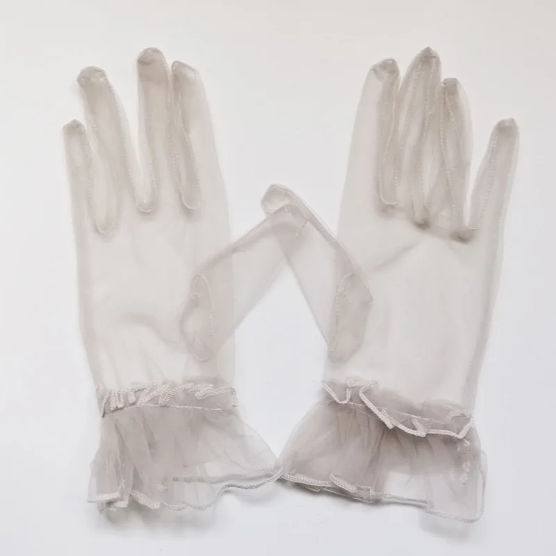 Осенне-летние Короткие Прозрачные тюлевые перчатки, ультратонкие сетчатые перчатки с закрытыми пальцами, варежки, элегантные женские свадебные перчатки для вождения с защитой от УФ-лучей