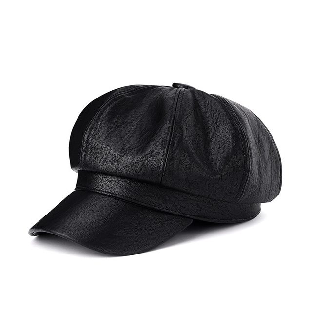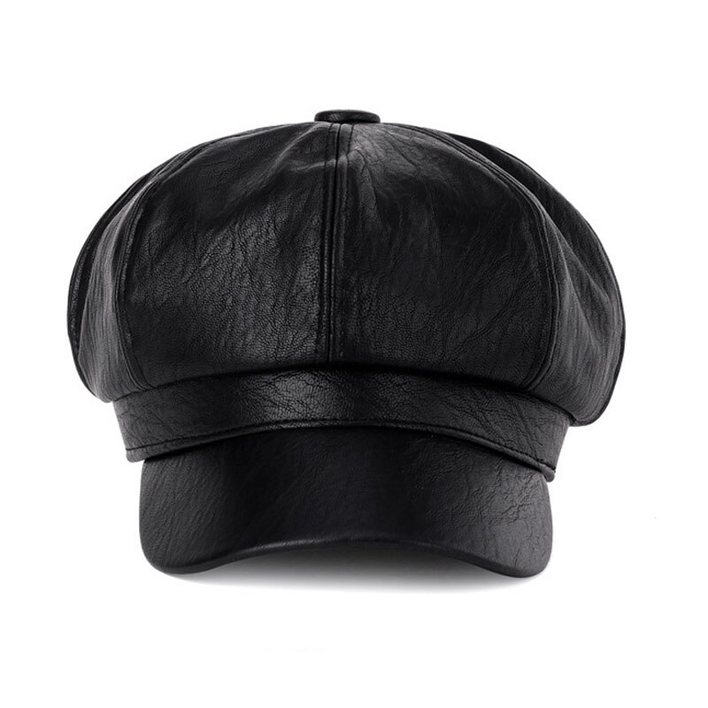 Осенне-зимние шапки для женщин, одноцветная восьмиугольная кепка Newsboy для мужчин и женщин, Повседневная шапка из искусственной кожи, Зимний берет для женщин, Кепка для художника