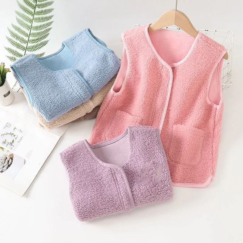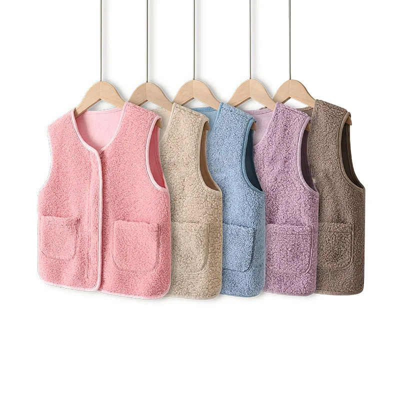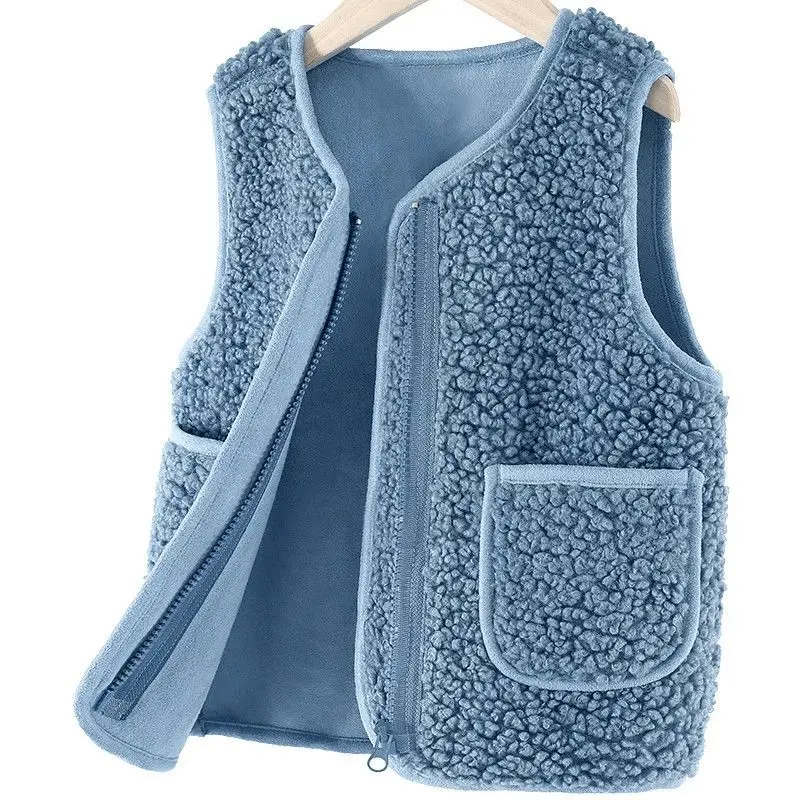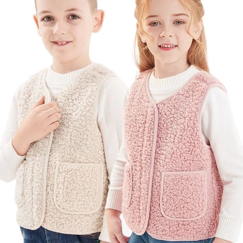 Осенне-зимний детский бархатный жилет из искусственной овечьей шерсти, теплые жилеты для мальчиков и девочек, детский плотный жилет, Приталенный жилет