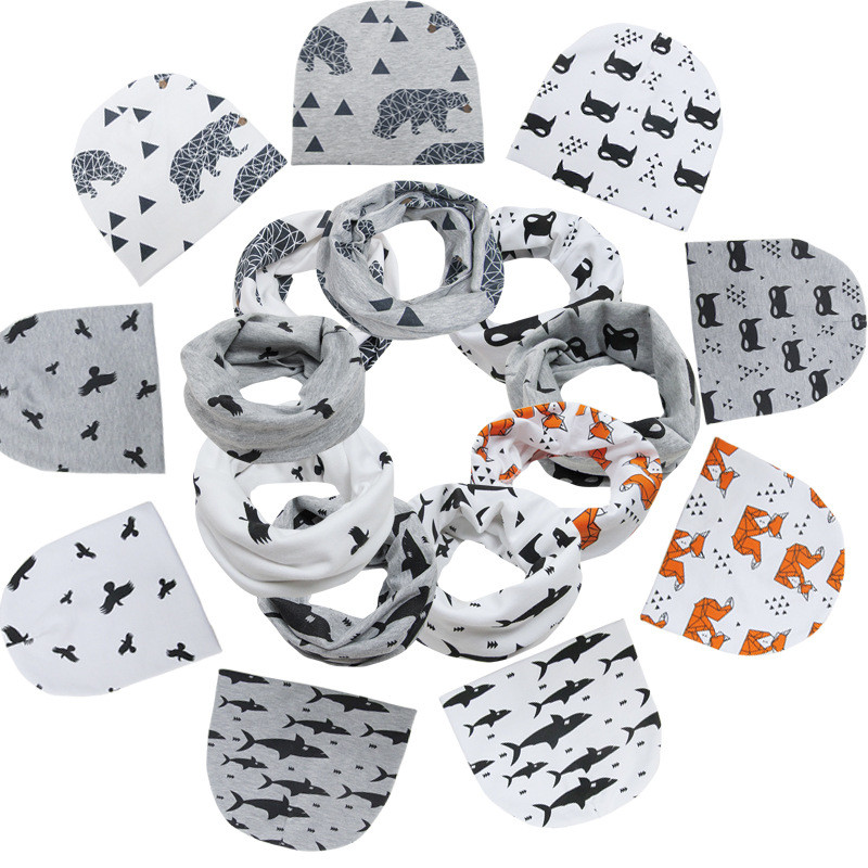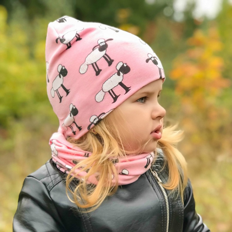 Осенне-зимняя детская хлопковая шапка с принтом овечки для девочек; Комплект с шарфом и изображением животных; Детские шапки; Детские шапочки; Шапки