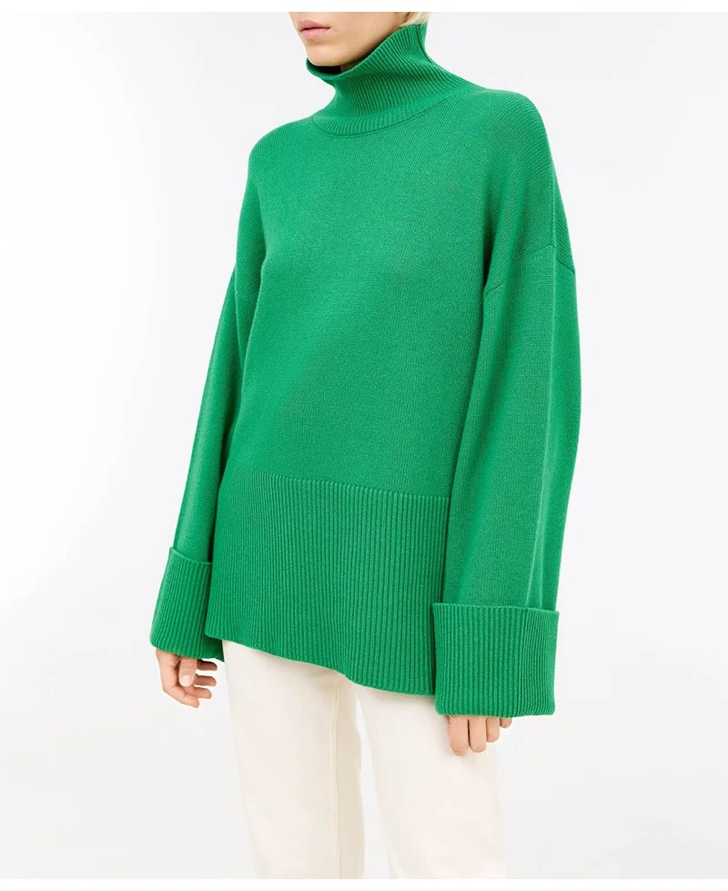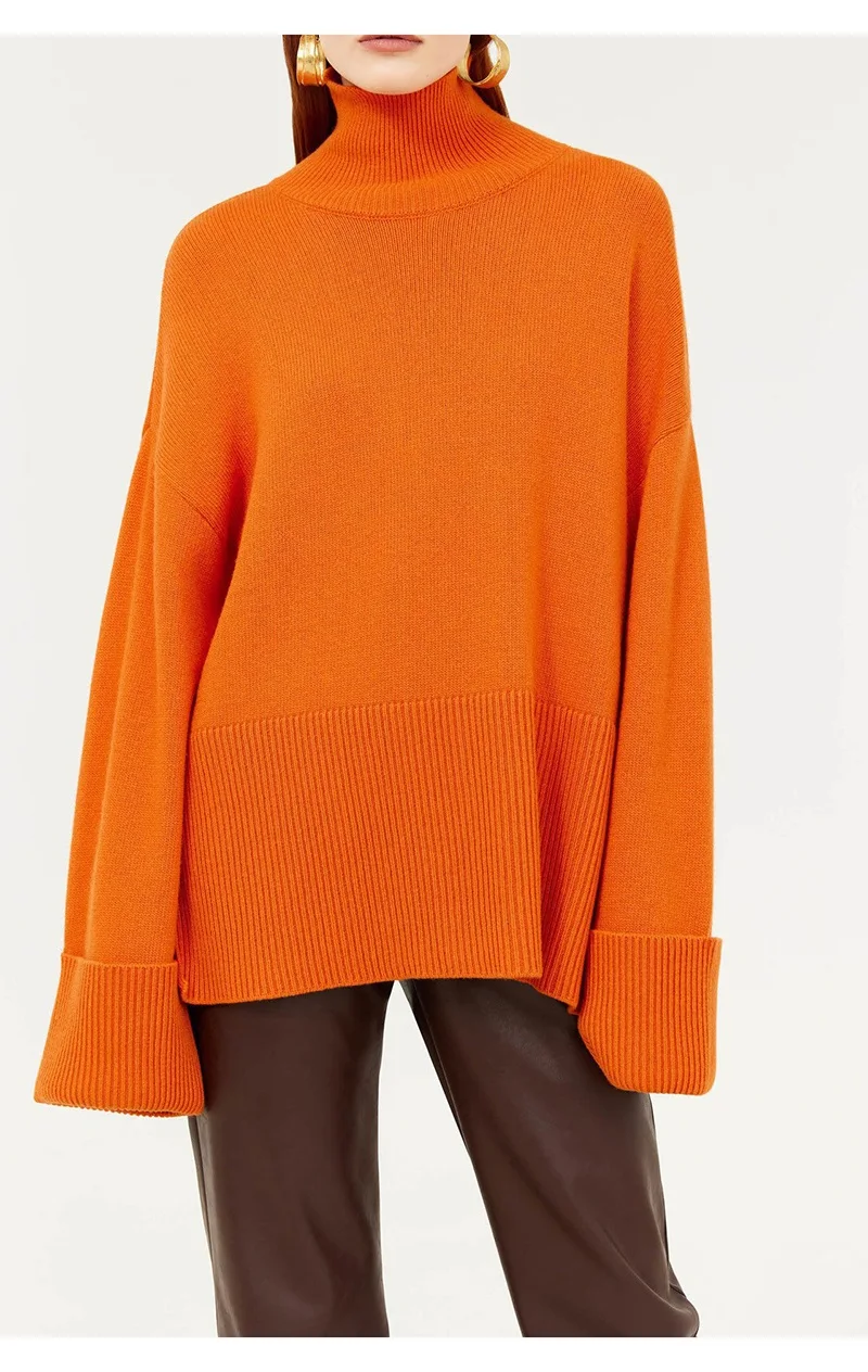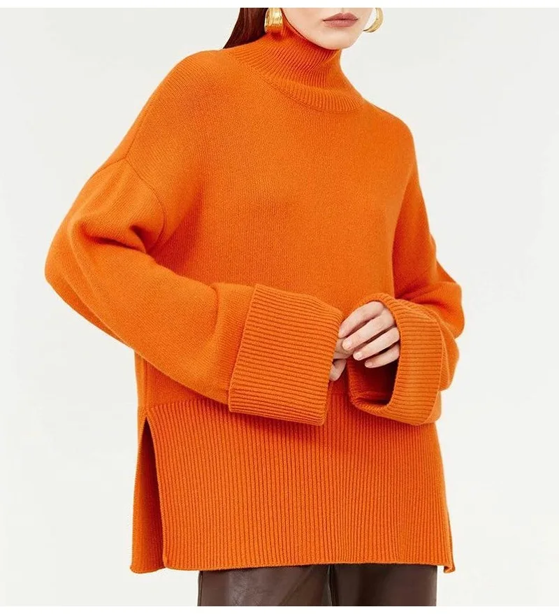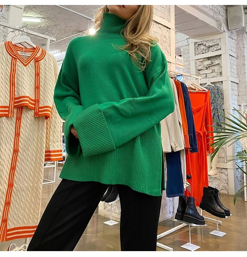 Осенне-зимний свитер с воротником «хомут», Женский вязаный пуловер оверсайз 2022, теплые зеленые свободные толстые женские свитера, оранжевые Топы