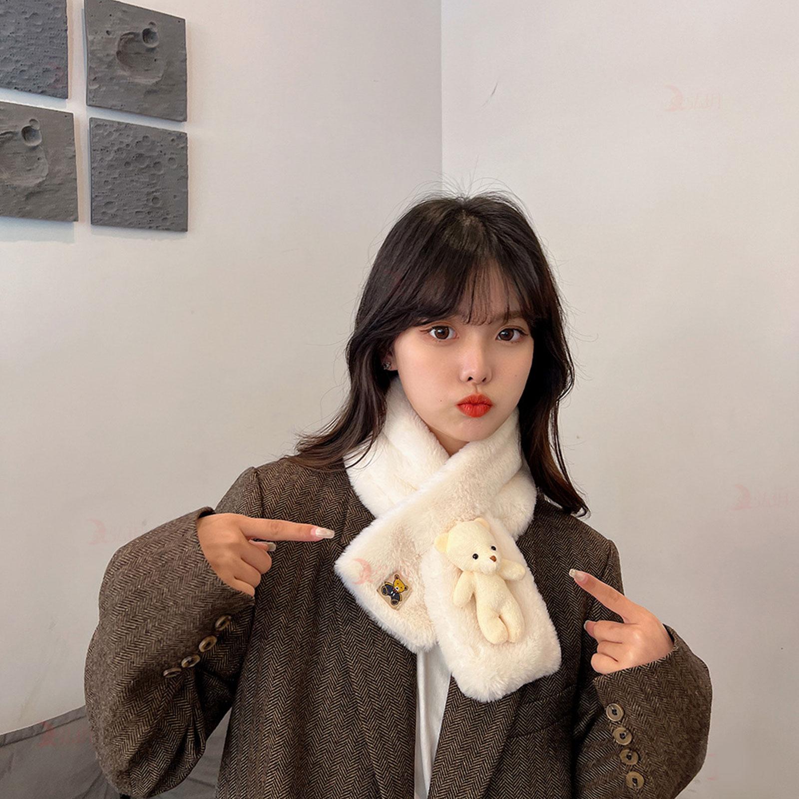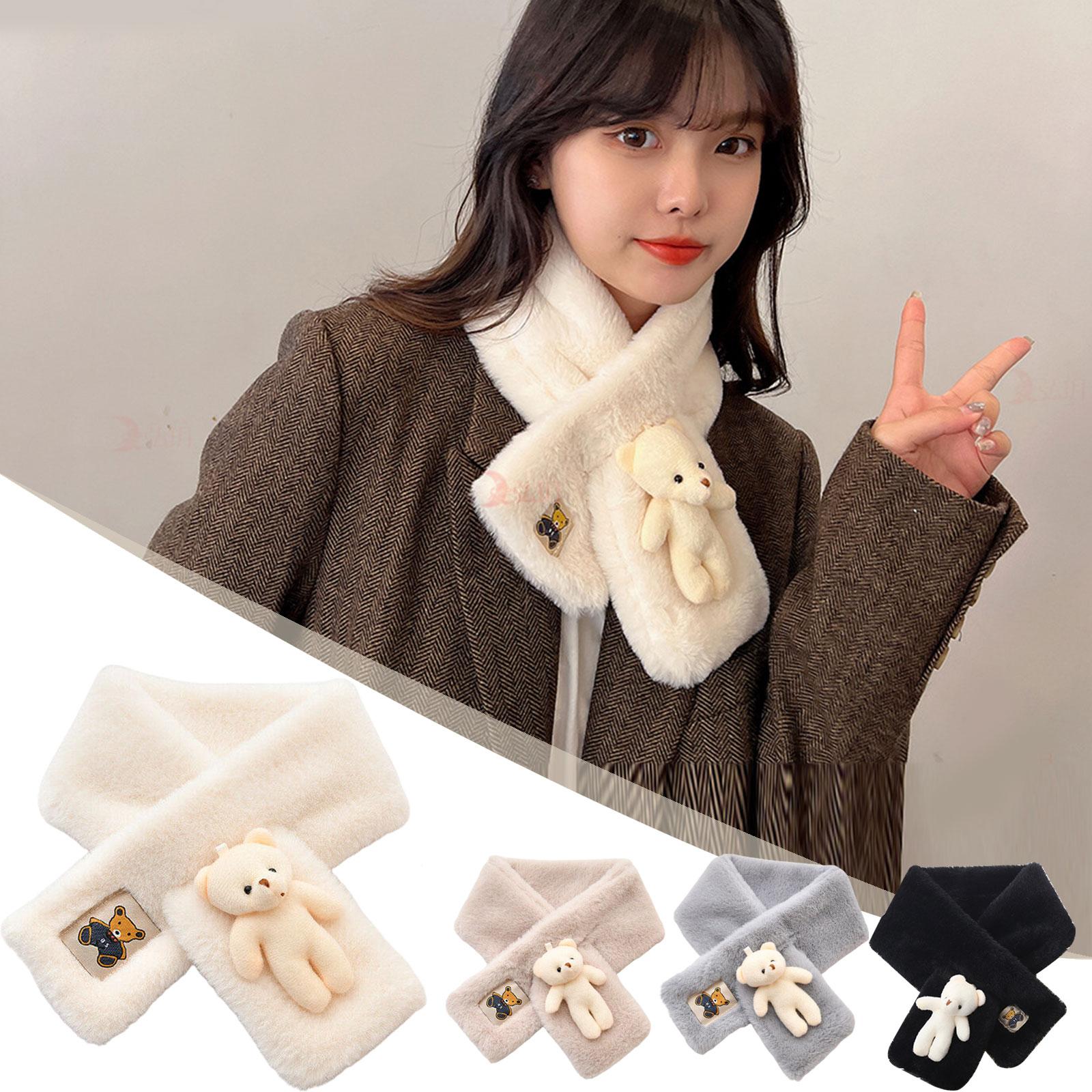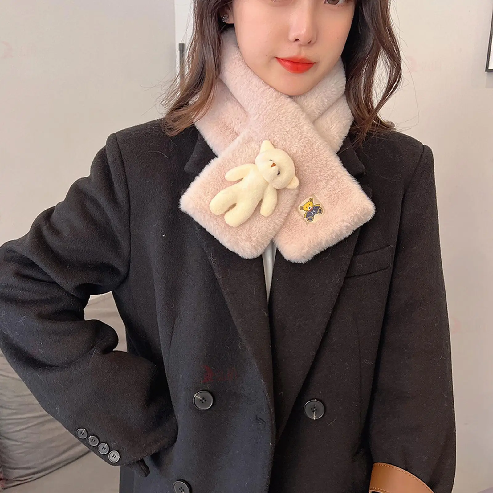 Осенне-зимний уличный теплый шарф с имитацией медвежьего волоса для мальчиков и женщин, шейный плюшевый шарф, теплые мягкие шарфы с рисунком медведя для девочек K8x6