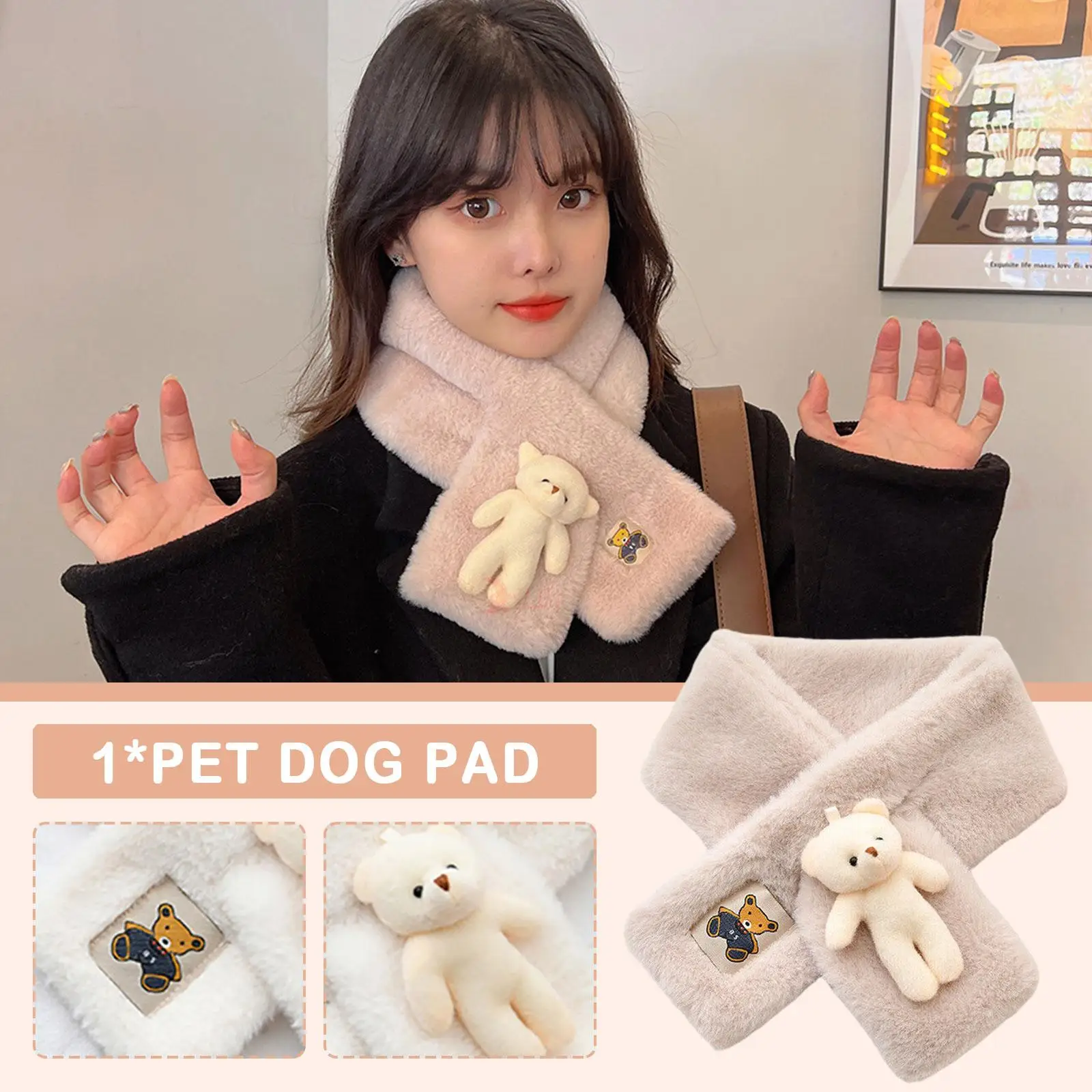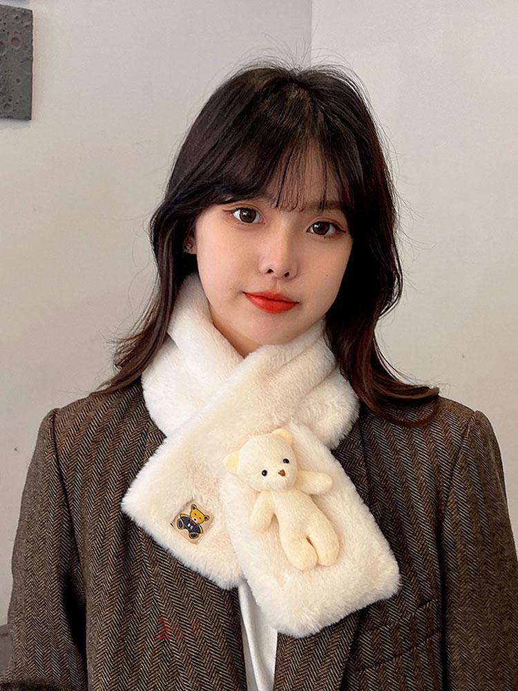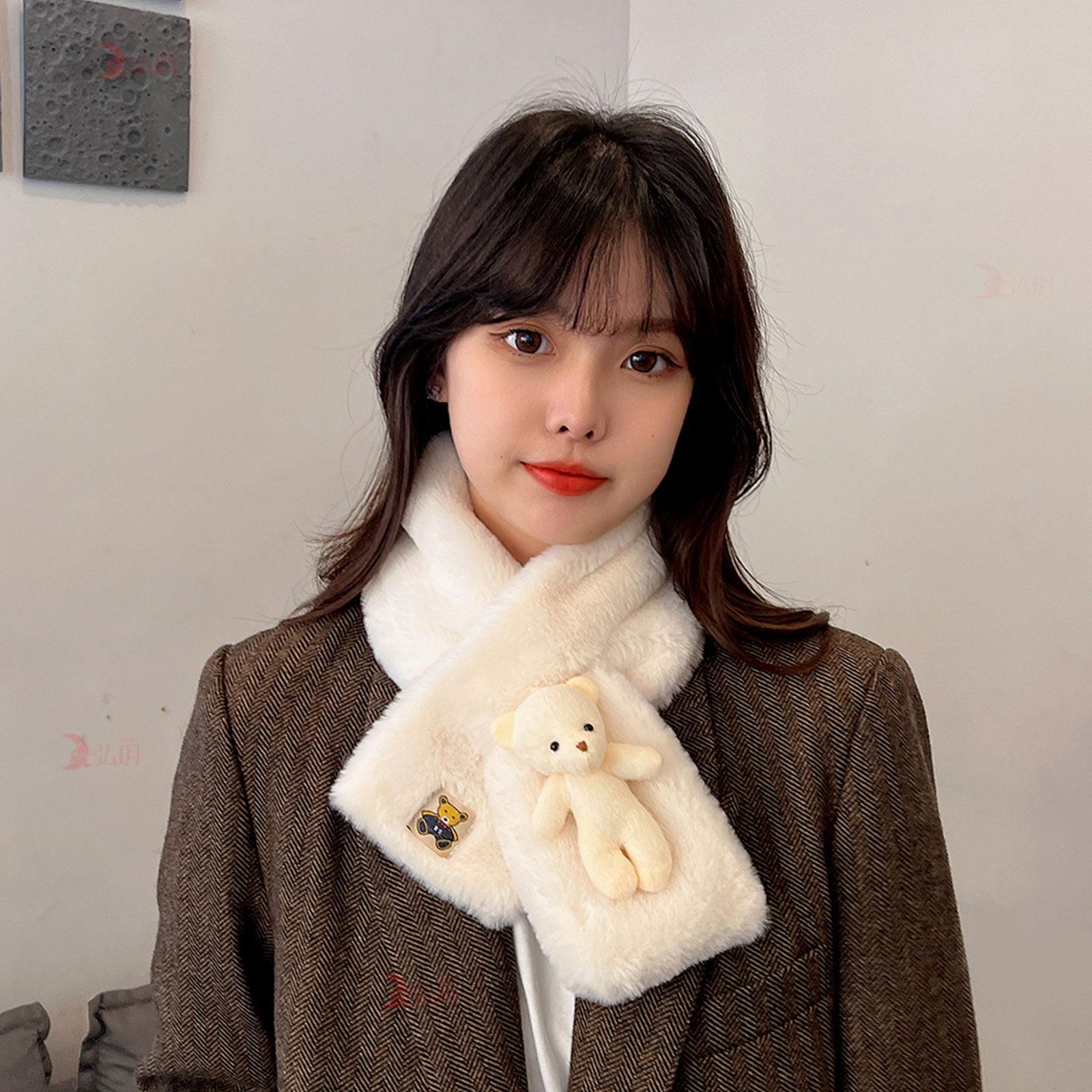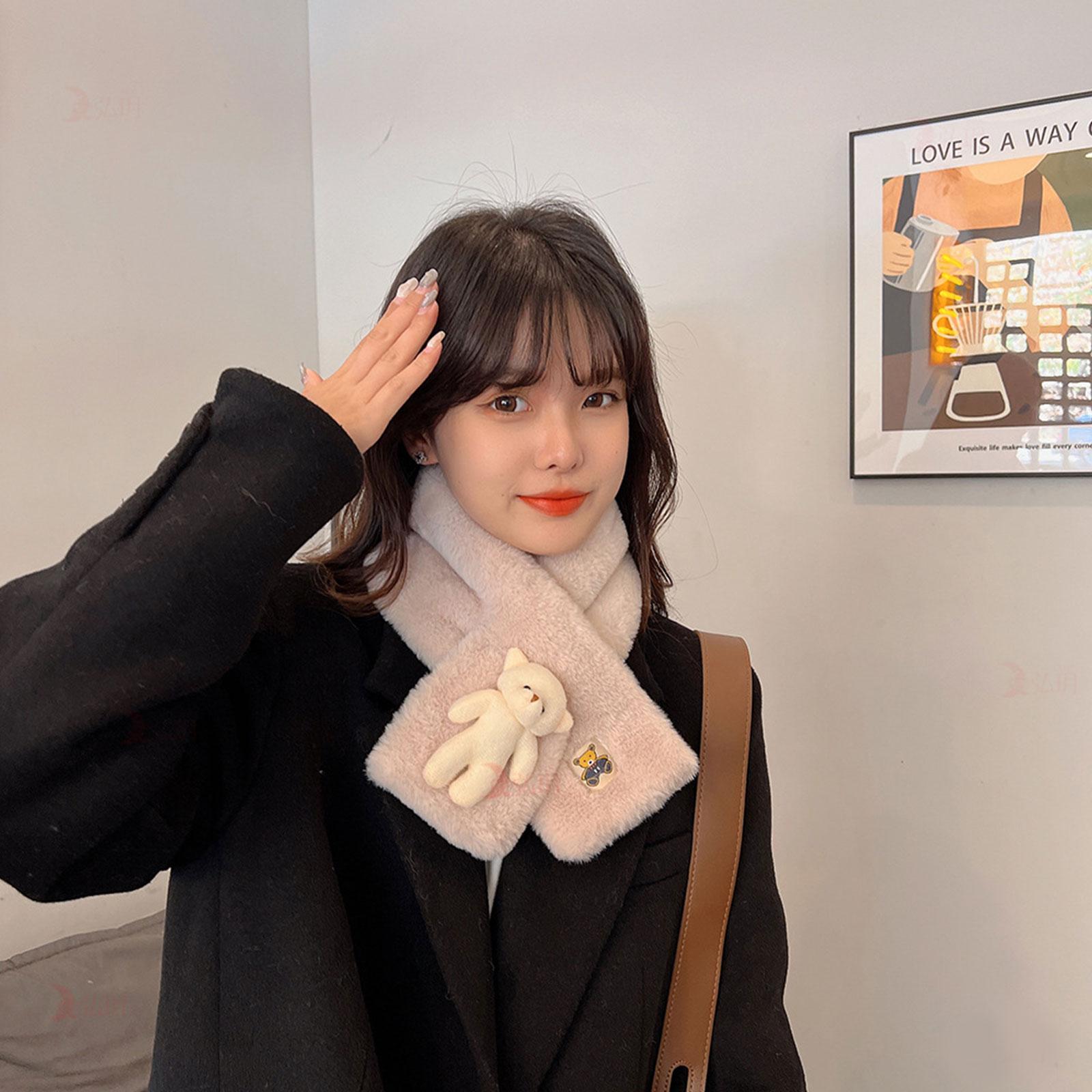 Осенне-зимний уличный теплый шарф с имитацией медвежьего волоса для мальчиков и женщин, шейный плюшевый шарф, теплые мягкие шарфы с рисунком медведя для девочек K8x6