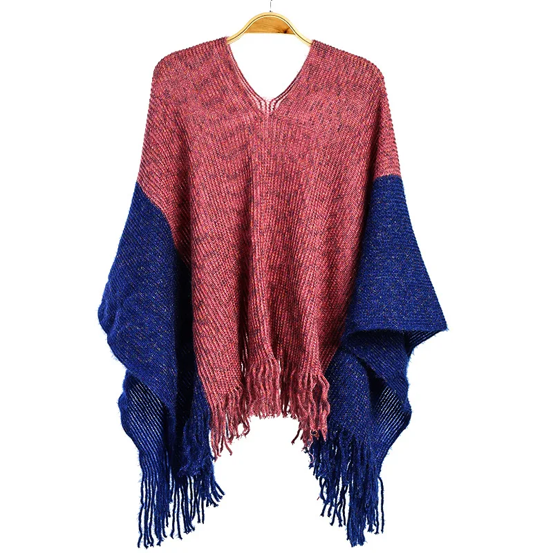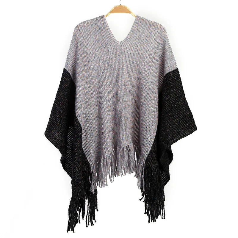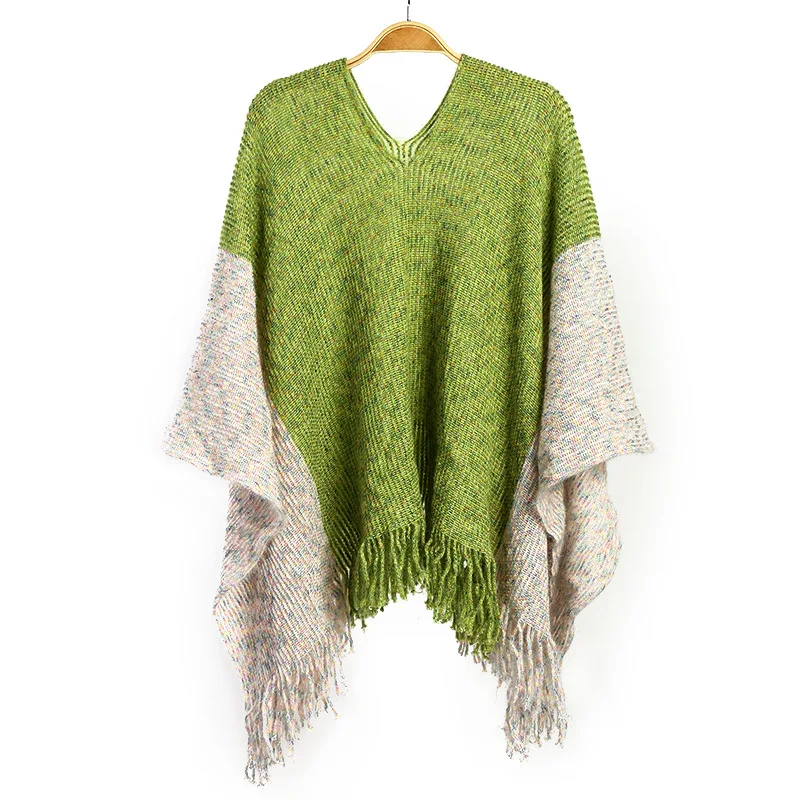 Осенне-зимняя новая женская накидка из искусственного кашемира в полоску контрастных цветов блестящее пончо с кисточками зеленые накидки