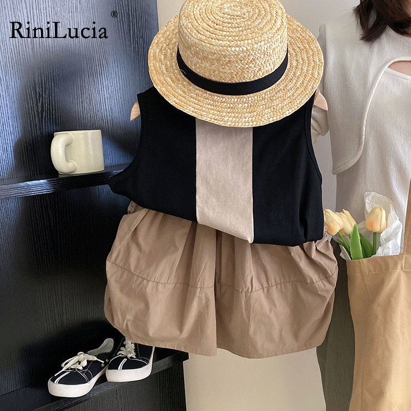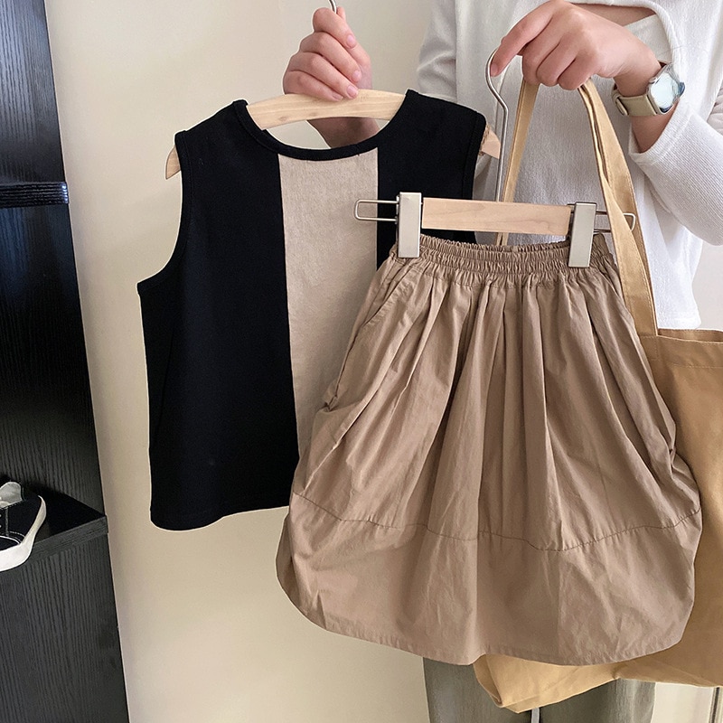 Осенние комплекты одежды для маленьких девочек 2023 года, комплект одежды для маленьких девочек, детские футболки без рукавов и юбки, костюмы из 2 предметов, наряды