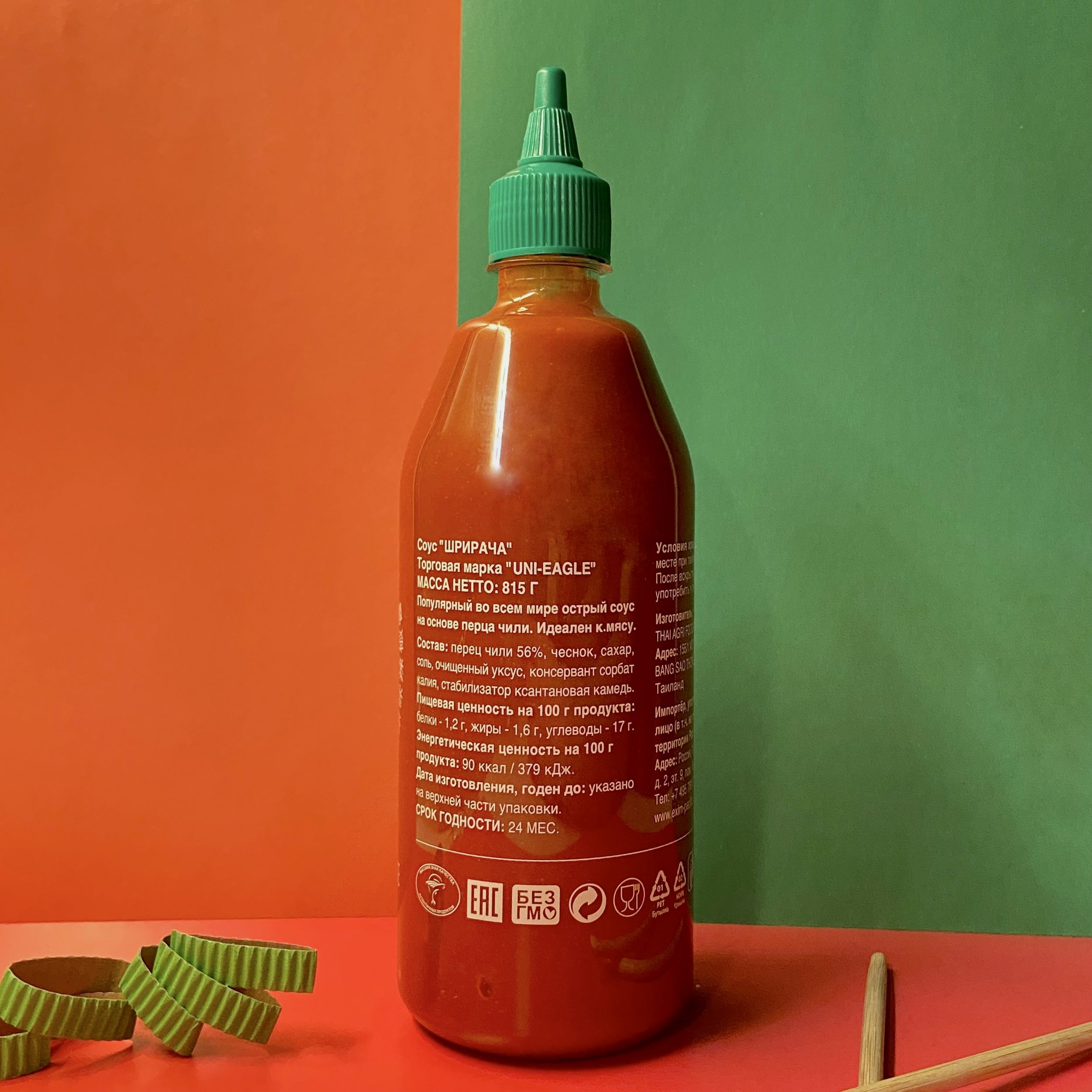 перец чили 56%, чеснок, сахар, соль, очищенный уксус, консервант сорбат калия, стабилизатор ксантановая камедь