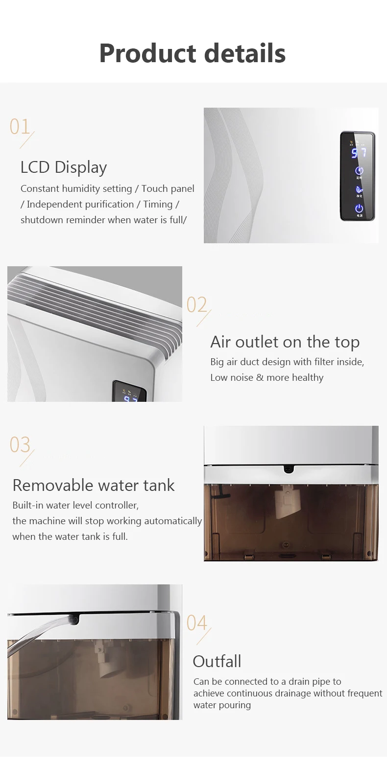 Осушитель воздуха со съемным резервуаром и сенсорной панелью, 24 часа, 2,2 л