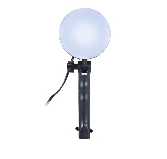 Описание: Мощный настольный светодиодный осветитель для предметной съемки, фотографирования еды и тому подобных задач. 32 светодиода общей мощностью 14 Вт обеспечивают световой поток примерно как у 100-ваттной лампочки накаливания: для настольного света это много. Матовый рассеиватель заметно смягчает свет. Яркость не регулируется, цветовая температура тоже фиксированная: 5500 К. SD-12 имеет удобную пистолетную рукоятку, а также может устанавливаться на студийную стойку: в комплекте идет мини-стойка высотой до 50 см. Прибор работает от сети 100-220 В
