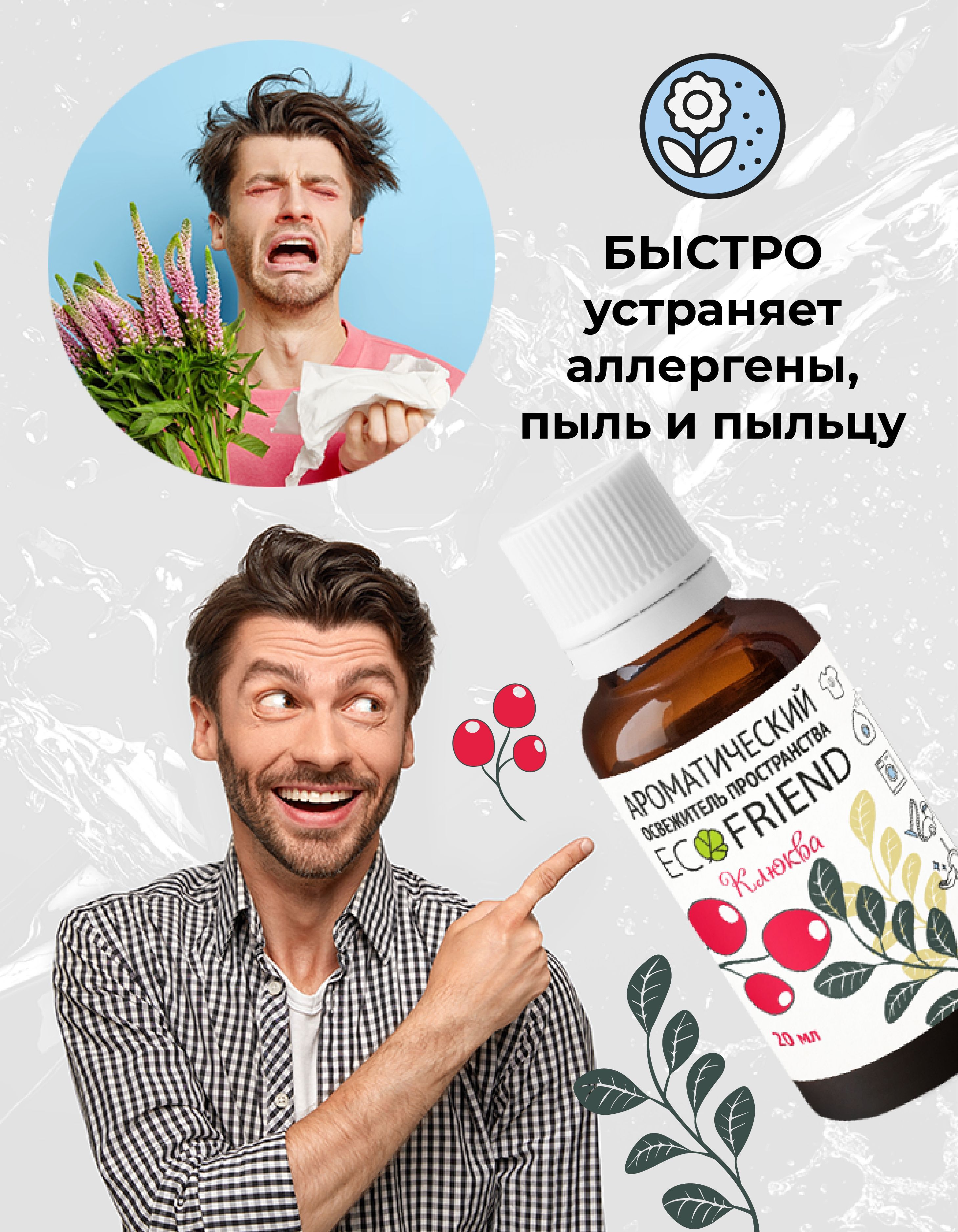 Эфирное масло в составе освежителя пространства наполняет помещение легким ароматом и оказывает на человека положительное физиологическое и биоэнергетическое воздействие.