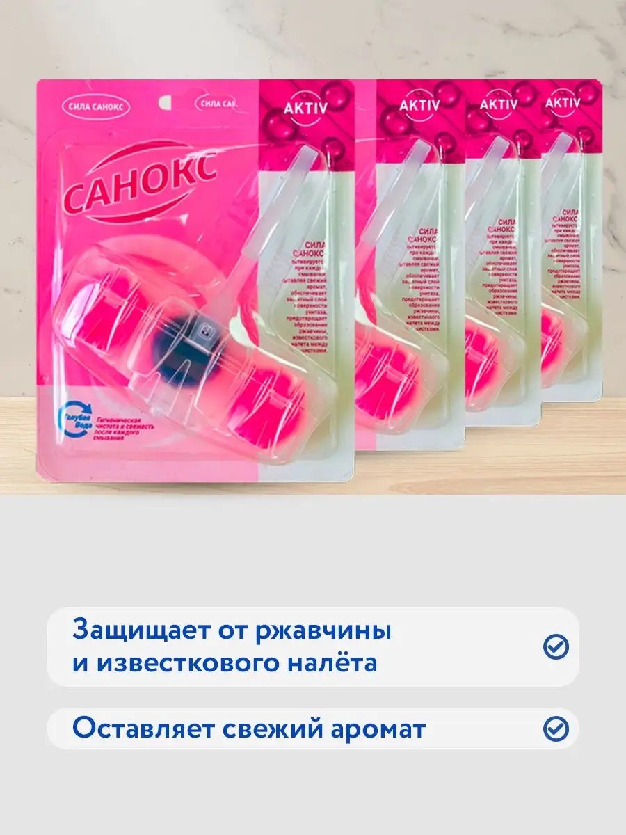 Описание: Средство для очистки унитаза Санокс Color Fresh таблетки в сменных блоках, набор 4шт. Обладает фруктовым ароматом. Современная формула шариков содержит поверхностно-активные вещества и неорганические соли, благодаря чему обеспечивает гигиеническую чистоту, защиту от бактерий. Эффективные растворяющиеся антибактериальные компоненты в составе шариков для унитаза защищают от известкового налета и от болезнетворных микроорганизмов. Использование блока убережет вашу сантехнику от известковых и солевых отложений, ржавчины и надолго продлит эксплуатацию. Блоки шариков содержат растворимый гель с освежающим ароматом. При каждом смывании воздух наполняется приятным ароматом, благодаря двойной силе шариков для унитаза, поэтому нет необходимости пользоваться дополнительными освежителями воздуха в туалете. Дезинфицирующее средство WC Санокс удобно и просто в использовании: снимите защитную пленку, повесьте блок под ободок унитаза в месте наибольшего потока воды; Блистеры для унитаза сэкономят Ваше время на уборку туалета. Блок для очистки унитаза эффективно удаляет любые загрязнения и поддерживает унитаз в чистоте длительное время, сохраняет белизну вашего унитаза. Бытовая химия от отечественного производителя АИСТ обеспечит свежесть и чистоту при каждом смывании!