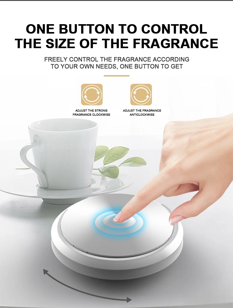 4. Уникальный механизм регулирования, вы можете вращать устройство аромата для контроля скорости испарения; Он открывается наиболее, когда указатель находится в середине шкалы