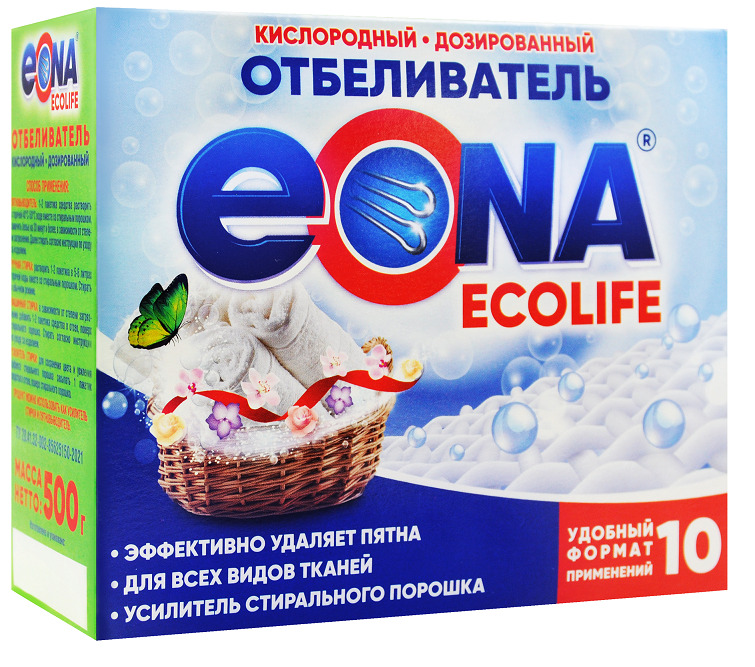 Отбеливатель для белья и тканей, порошок ЭОНА EONA ECOLIFE 500 гр.