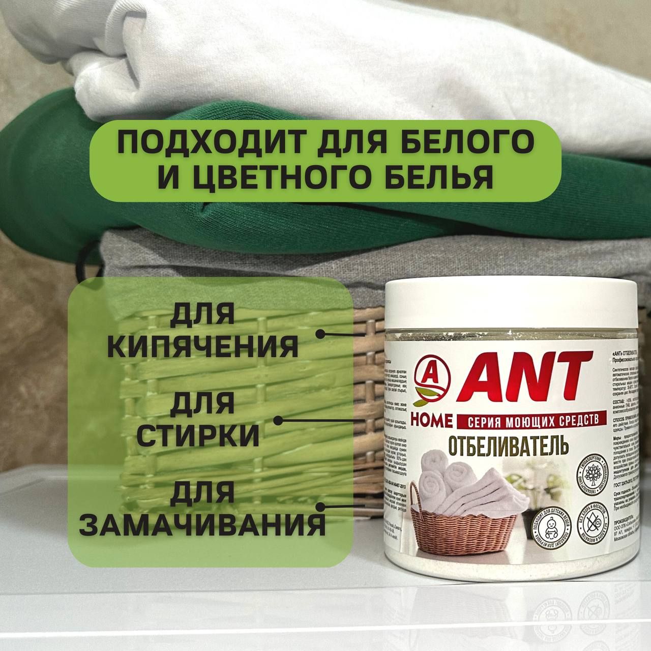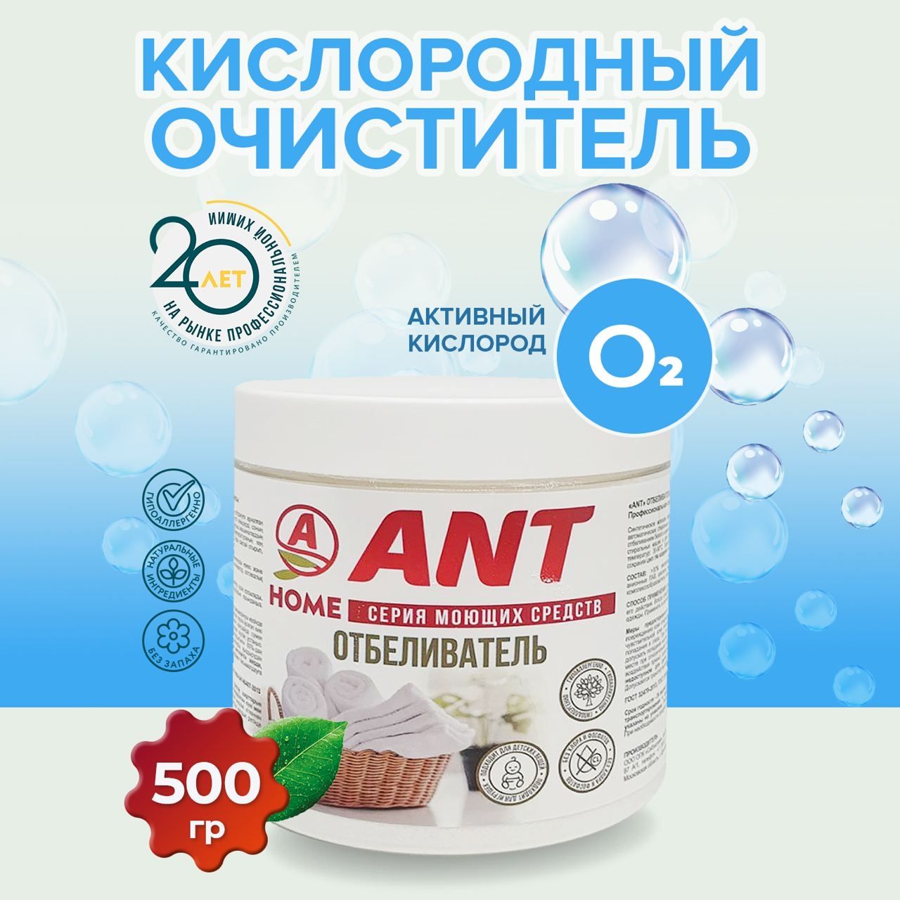 Отбеливатель кислородный для стирки белья усилитель АНТ ANT 500 гр