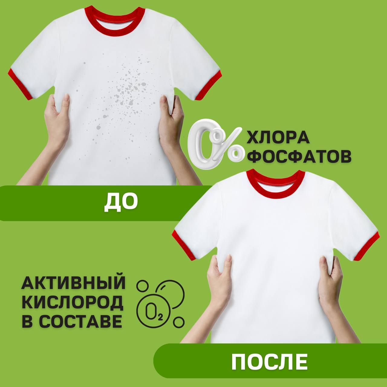СОСТАВ: >30% кислородосодержащий отбеливатель, неионогенные и анионные ПАВ, цеолиты, активатор отбеливания, оптический отбеливатель, комплексообразователи, полезные добавки.