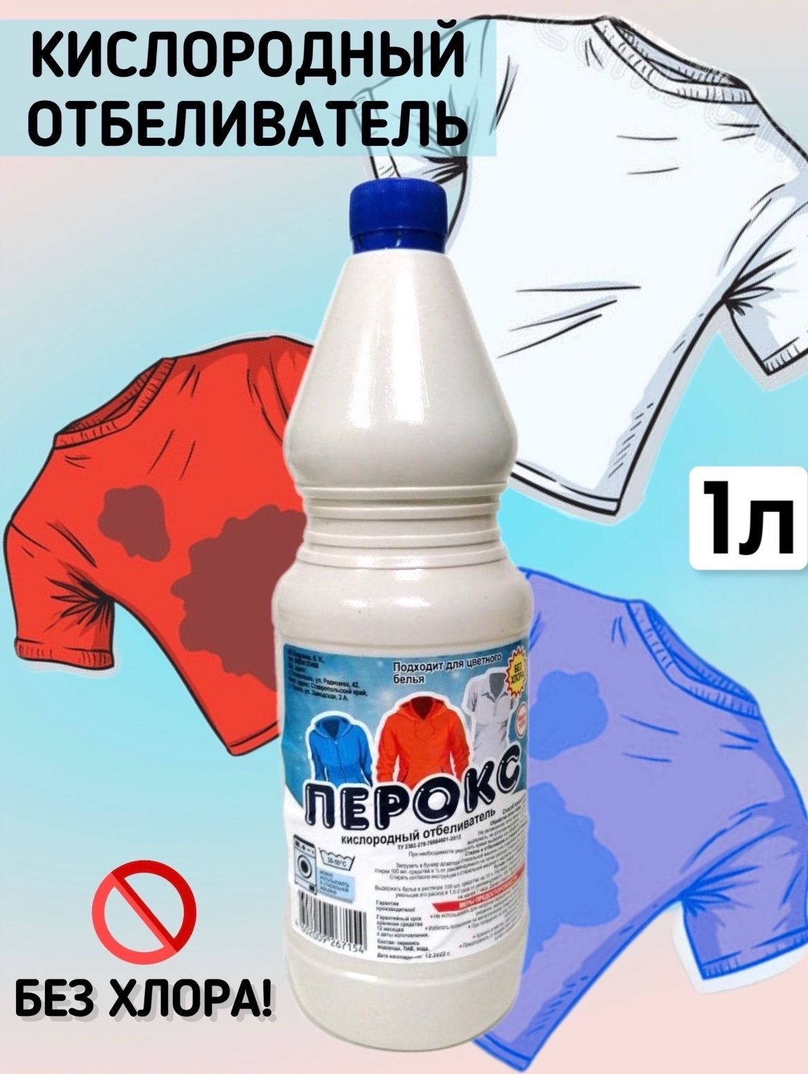 Отбеливатель кислородный и пятновыводитель ПЕРОКС для белого и цветного белья 1л, без ХЛОРА, концентрат