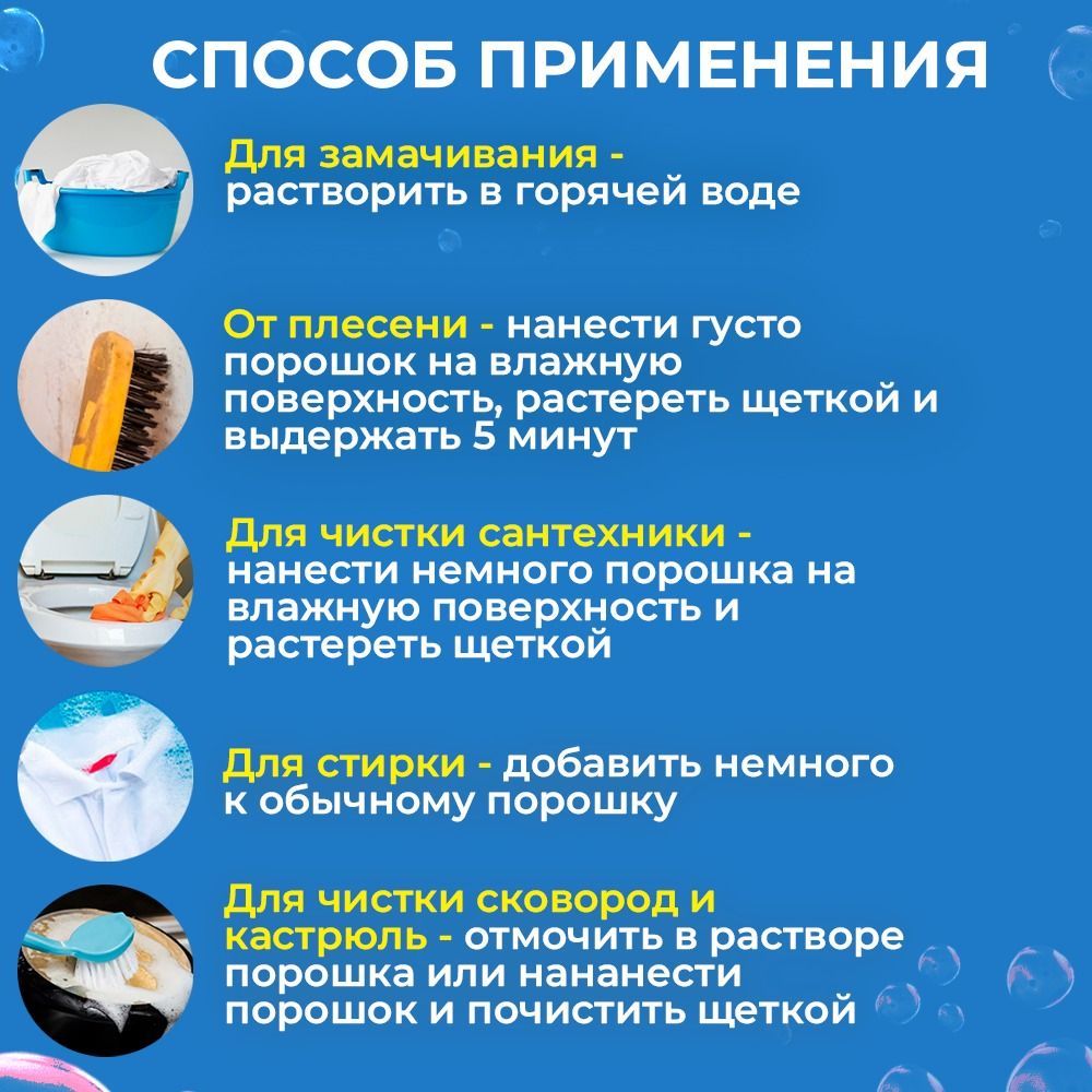 Состав: в состав средства входит натрия пероксисольват карбонат - 97 %. Действующим