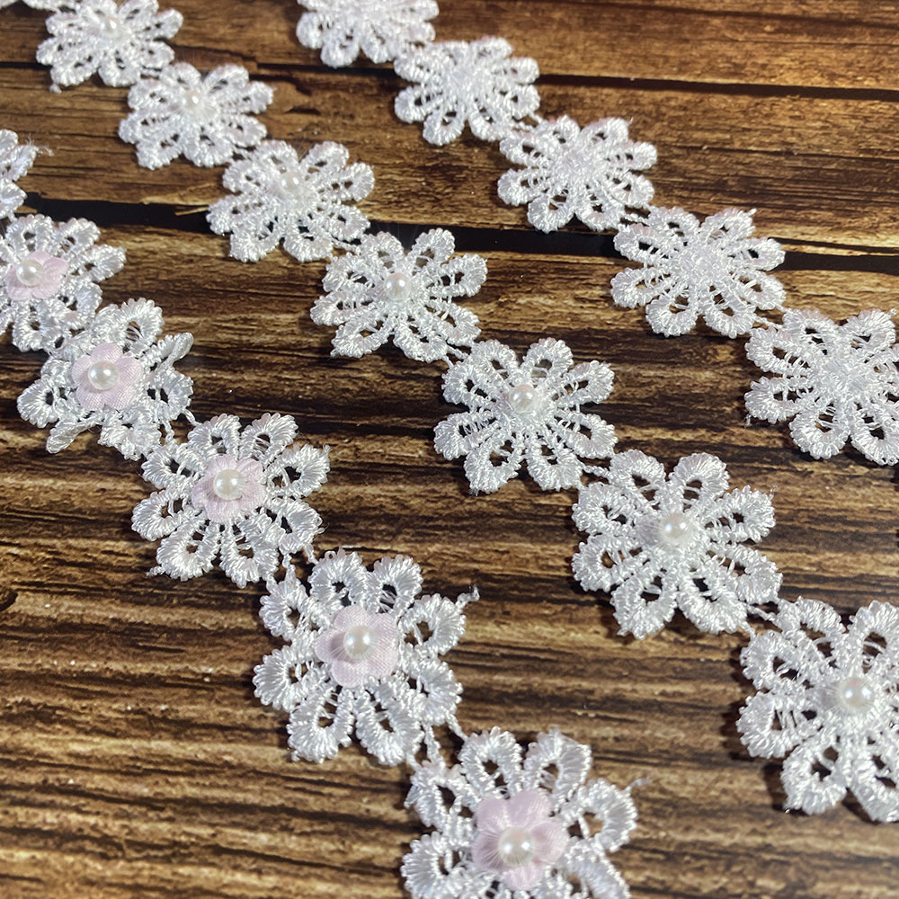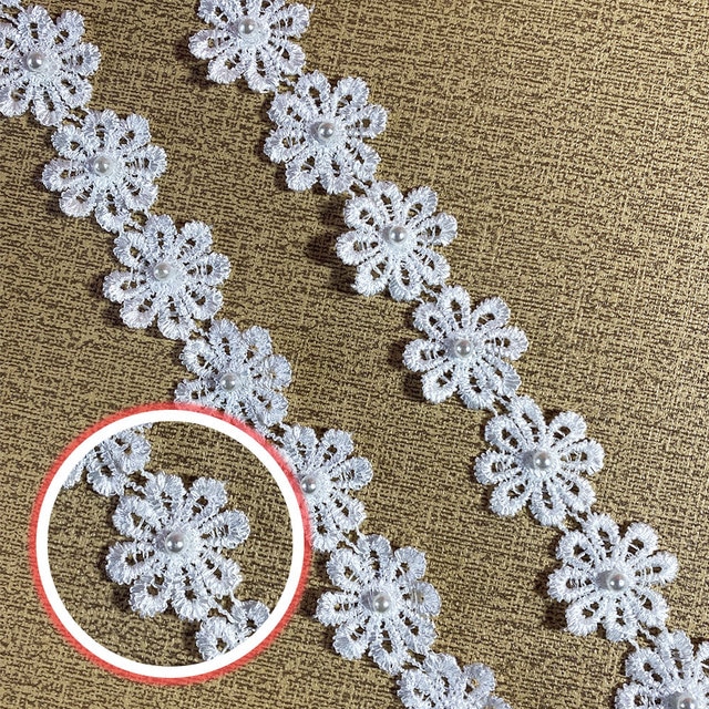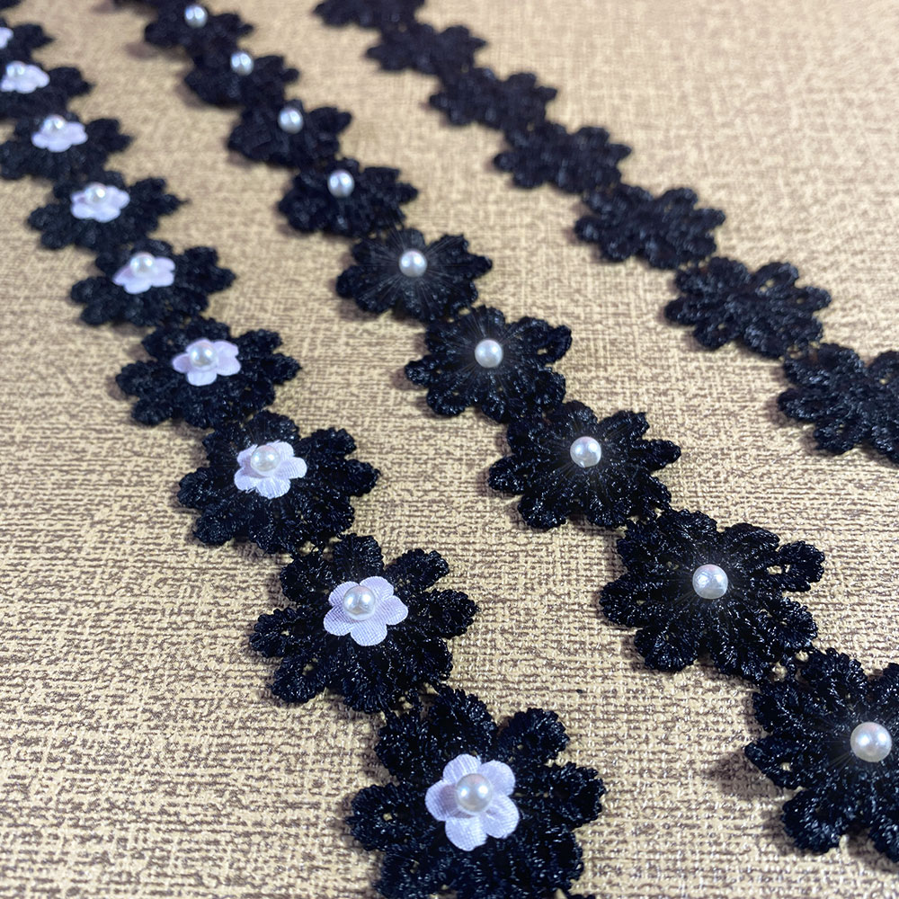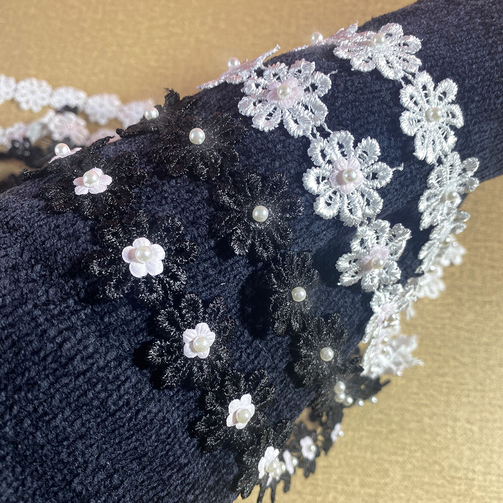 2.5CM Wide White Black 3d Flowers Embroidered Daisy Beaded Lace Trim Dress Collar Sewing Trimming Decor for Crafts Fabric Ribbon