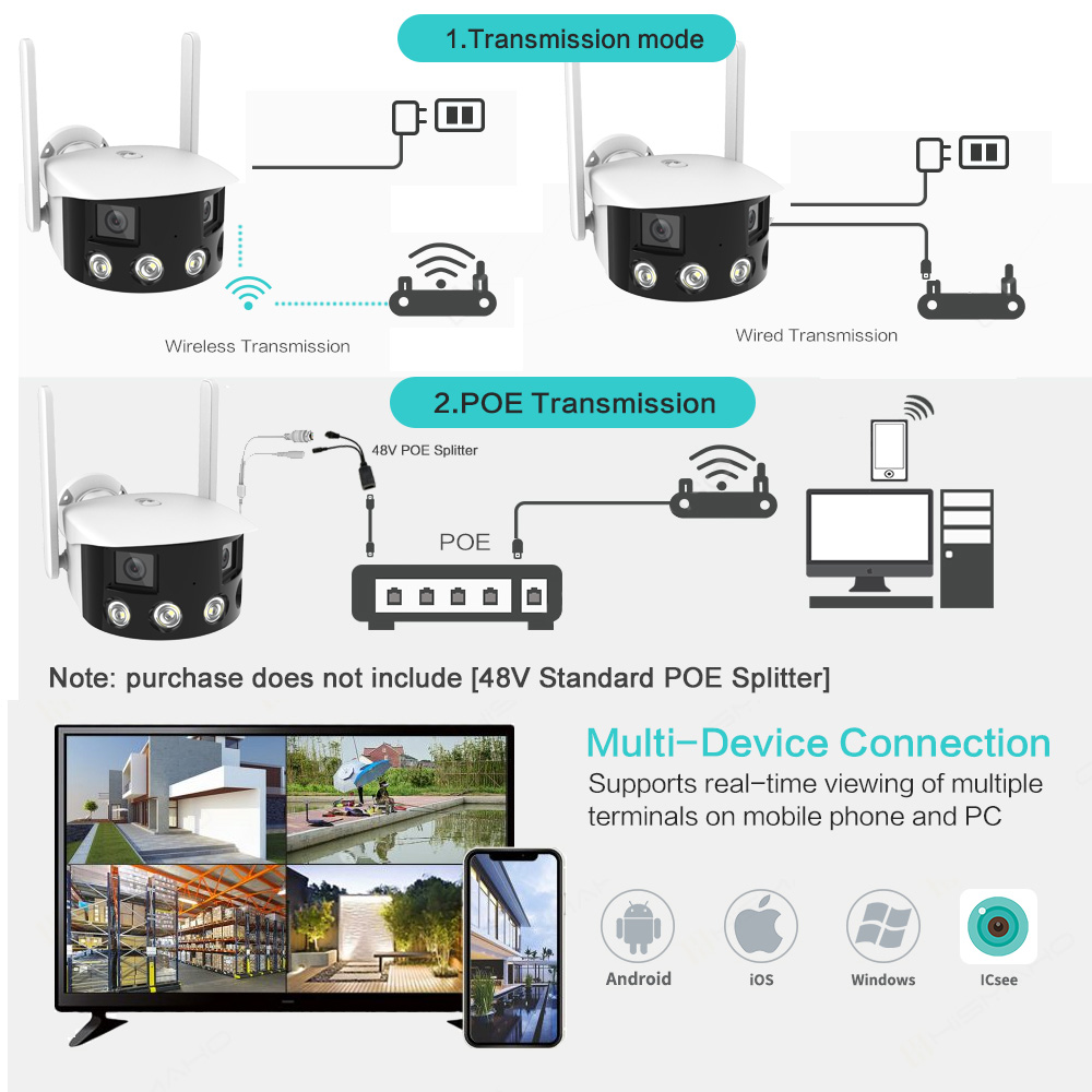 Camera supports to connect to IOS, Android, Windows, and web browser. You can easily realize free connection with the camera in any of these four ways.