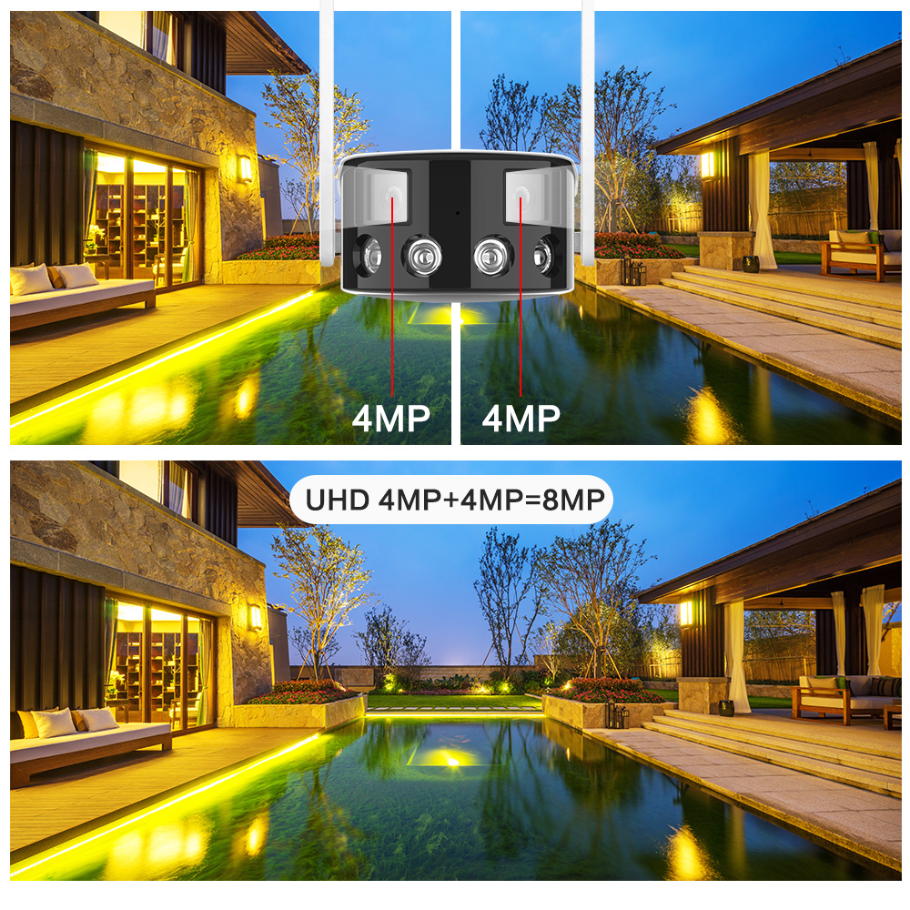 Камера 4K 8MP (3840*2160), что означает, что один объектив-4MP, поэтому двойной объектив-4MP + 4MP = 4K 8MP