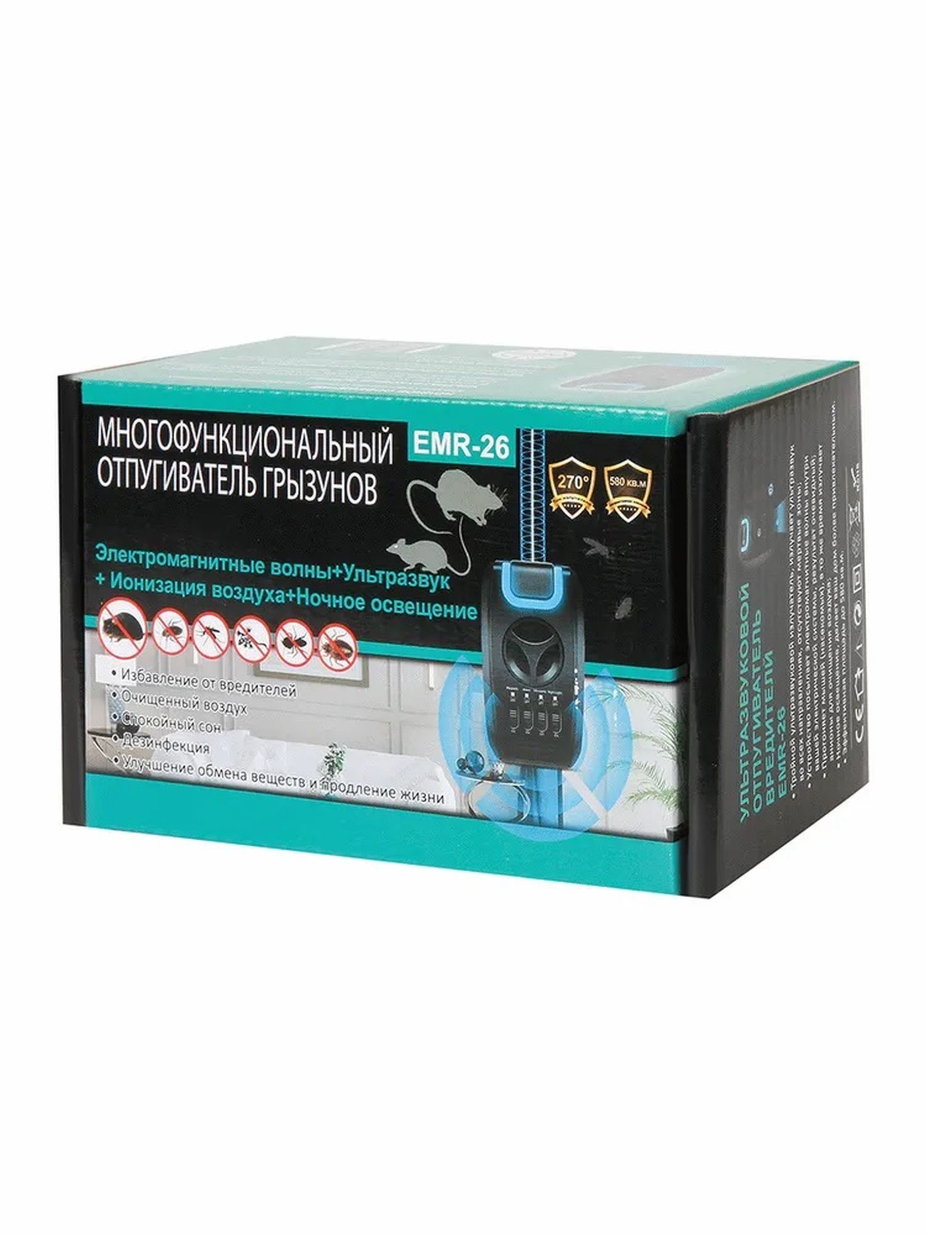 Отпугиватель грызунов EMR-26 - 1 шт; Инструкция на русском языке - 1 шт; Коробка - 1шт.