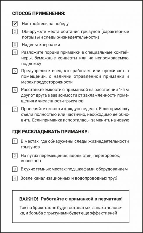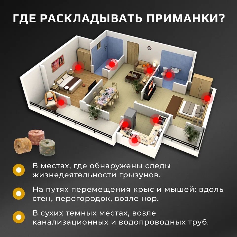 Расстояние между точками раскладки обычно 1–5 м, зависит от численности грызунов и предназначения помещения.