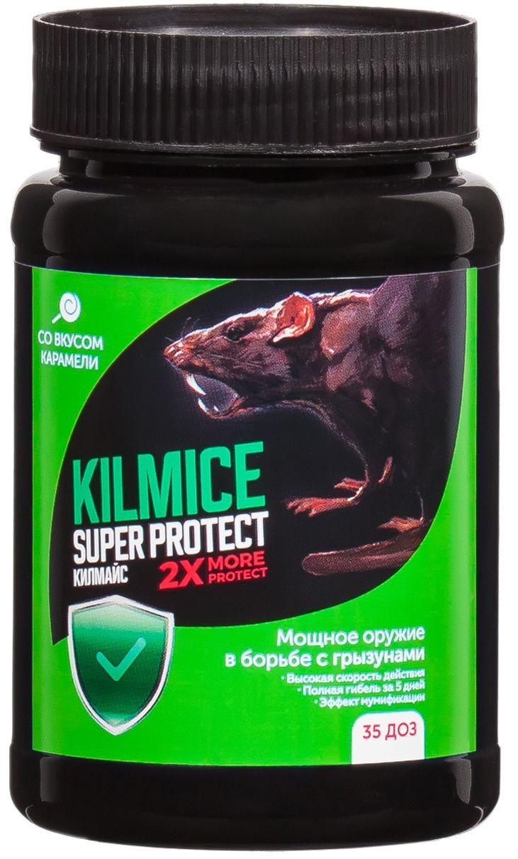 Описание: рофессиональная отрава Килмайс 2 шт по 180 гр со вкусом карамели Kilmice – мощное и эффективное оружие в борьбе с грызунами. Брикеты с бродифакумом со вкусом мяса, рыбы или карамели можно применять как в закрытых помещениях, так и на открытых площадках. Мумифицирующее средство от грызунов уничтожает как мышей, так и крыс. Такой яд необходимо разложить на подложки или в контейнеры в местах появления животных: возле крысиных нор, вдоль стен и на путях перемещения в помещении или в саду на огороде, а также хранилищах зерна. В одной порции приманки размещают 5-8 брикетов в случае уничтожения мышей, и по 10-12 – для крыс. Полная гибель животного наступает в течение 3-12 дней даже после одноразового поедания приманки. Благодаря содержанию парафина в отраве, её можно использовать на влажных и пыльных территориях. Высокая поедаемость мора для борьбы с грызунами гарантирована присутствию в составе кукурузы и специфических аттрактантов. В результате быстрого действия, такая защита вашего хозяйства от мышек и крысенышей действует более надёжно и долговременно, чем простой капкан с липучкой, мышеловка с клеем, клеевая ловушка или ультразвуковой отпугиватель. Большая просьба, к владельцам домашних животных, собак и кошек держать подальше от смертельной приманки.