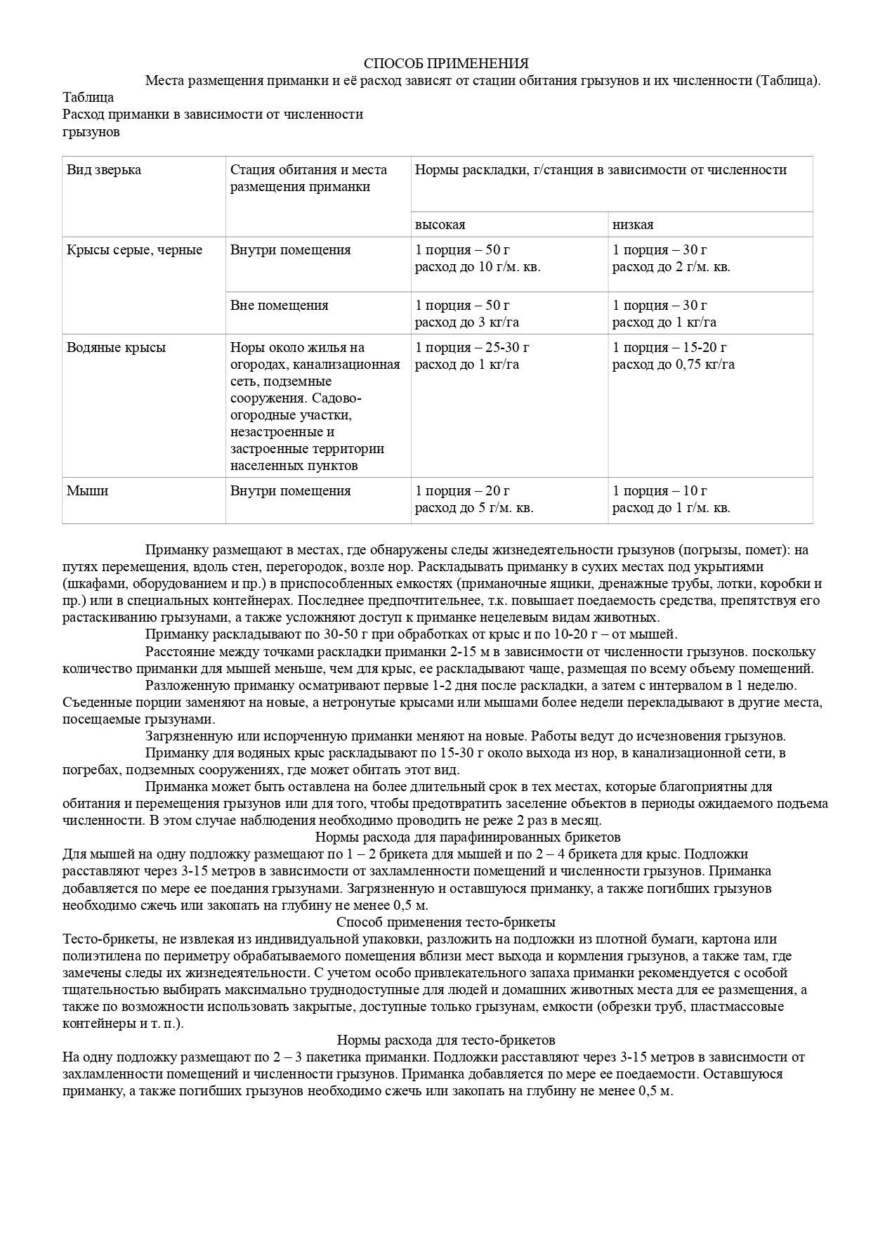 Описание: Профессиональная отрава Килмайс 180 г со вкусом мяса Kilmice – мощное и эффективное оружие в борьбе с грызунами. Брикеты с бродифакумом со вкусом мяса, рыбы или карамели можно применять как в закрытых помещениях, так и на открытых площадках. Мумифицирующее средство от грызунов уничтожает как мышей, так и крыс. Такой яд необходимо разложить на подложки или в контейнеры в местах появления животных: возле крысиных нор, вдоль стен и на путях перемещения в помещении или в саду на огороде, а также хранилищах зерна. В одной порции приманки размещают 5-8 брикетов в случае уничтожения мышей, и по 10-12 – для крыс. Полная гибель животного наступает в течение 3-12 дней даже после одноразового поедания приманки. Благодаря содержанию парафина в отраве, её можно использовать на влажных и пыльных территориях. Высокая поедаемость мора для борьбы с грызунами гарантирована присутствию в составе кукурузы и специфических аттрактантов. В результате быстрого действия, такая защита вашего хозяйства от мышек и крысенышей действует более надёжно и долговременно, чем простой капкан с липучкой, мышеловка с клеем, клеевая