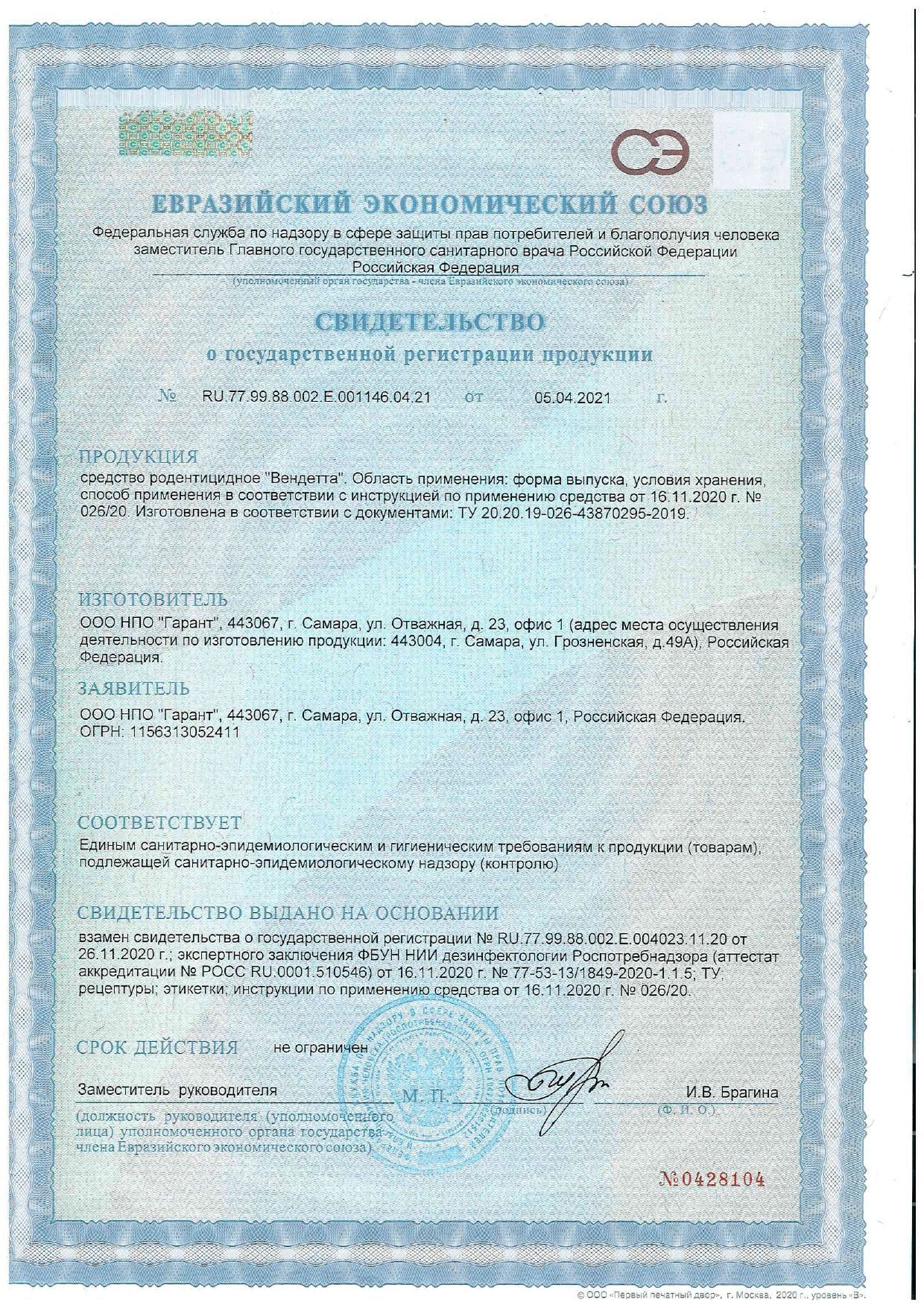2 Пакета средства от грызунов в зёрнах Вендетта по 500 грамм
