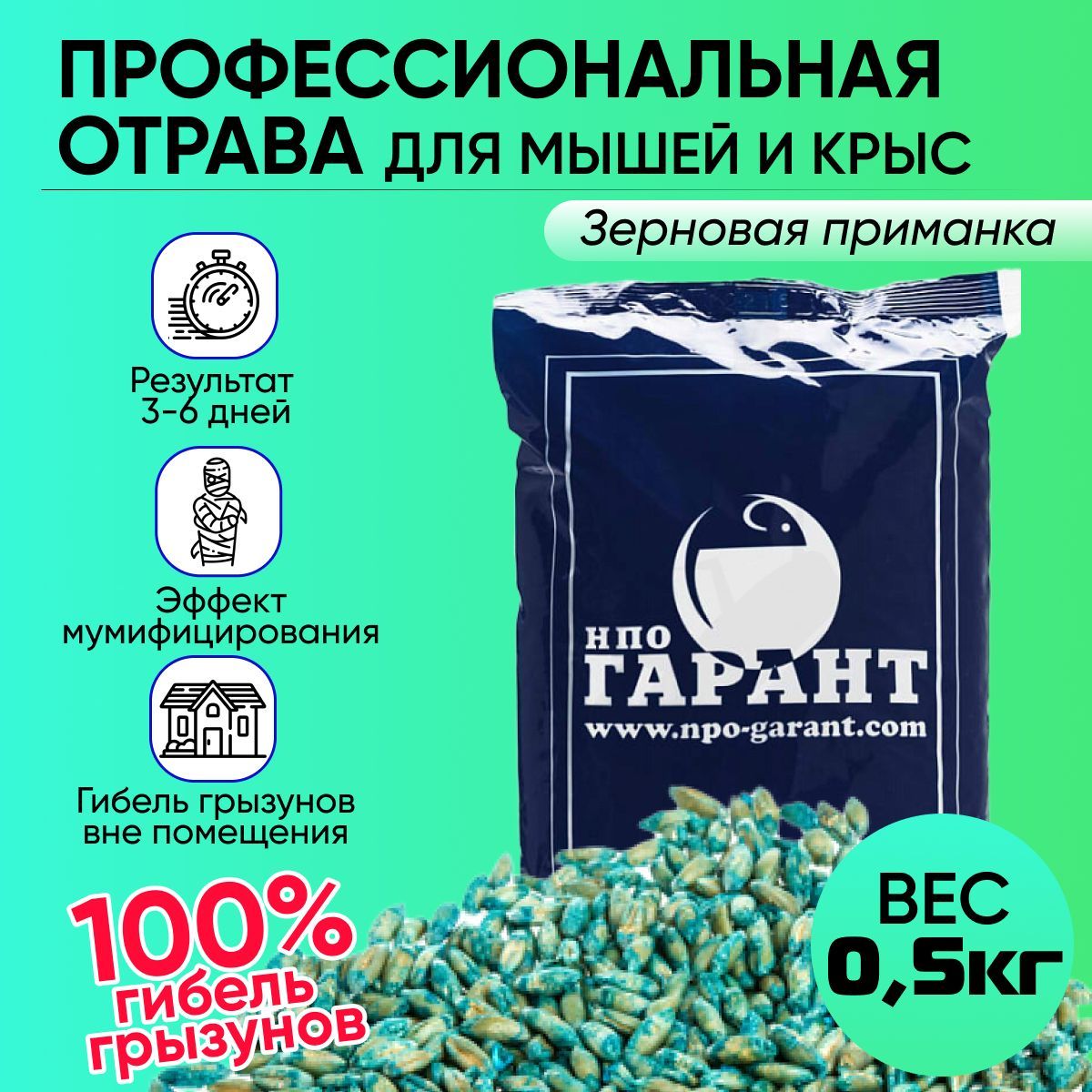 Отрава для мышей и крыс мумифицирующая грызунов зерно голубое 500 грамм