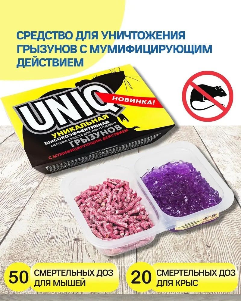 ОТРАВА от грызунов, от крыс, от мышей UNIQ Уник 1 штука 250 г (10 УП)
