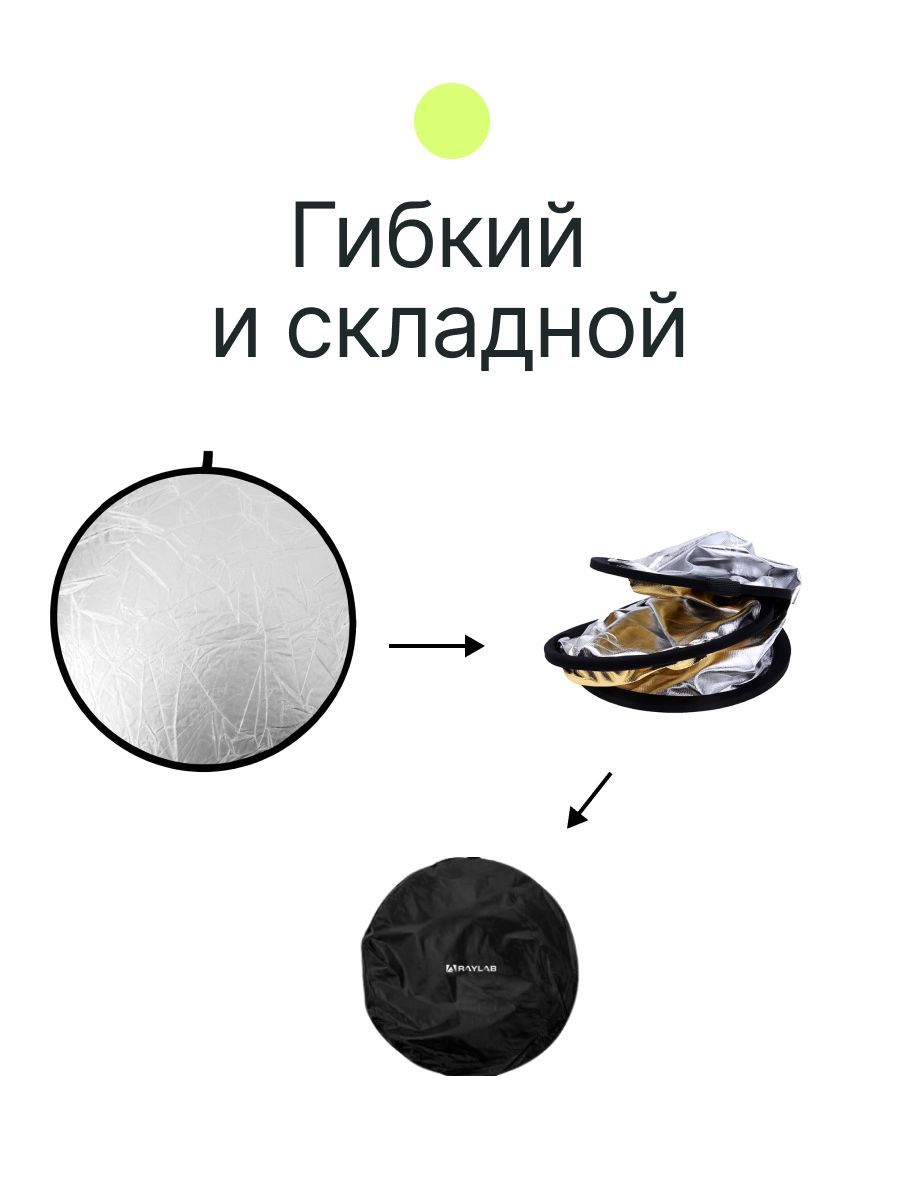 Светоотражатель Raylab - это один из самых важных инструментов для создания прекрасного освещения в фотографии. Он используется для направления, отражения и управления светом, чтобы создать идеально освещенные фотографии. Отражатель света может быть использован для создания мягкого света, для осветления тени, для изменения цвета света, для создания глубины и многого другого (предметная съемка, портретная съемка, фэшн съемка, студийная съемка и другие виды). Когда вы используете отражатель для фото, вы можете контролировать свет, который падает на объект фотографии. Вы можете отразить свет на объекте, чтобы создать мягкие тени, которые позволяют создать трехмерный эффект. Вы можете также использовать отражатель для направления света на объект, чтобы создать яркое и ясное освещение.