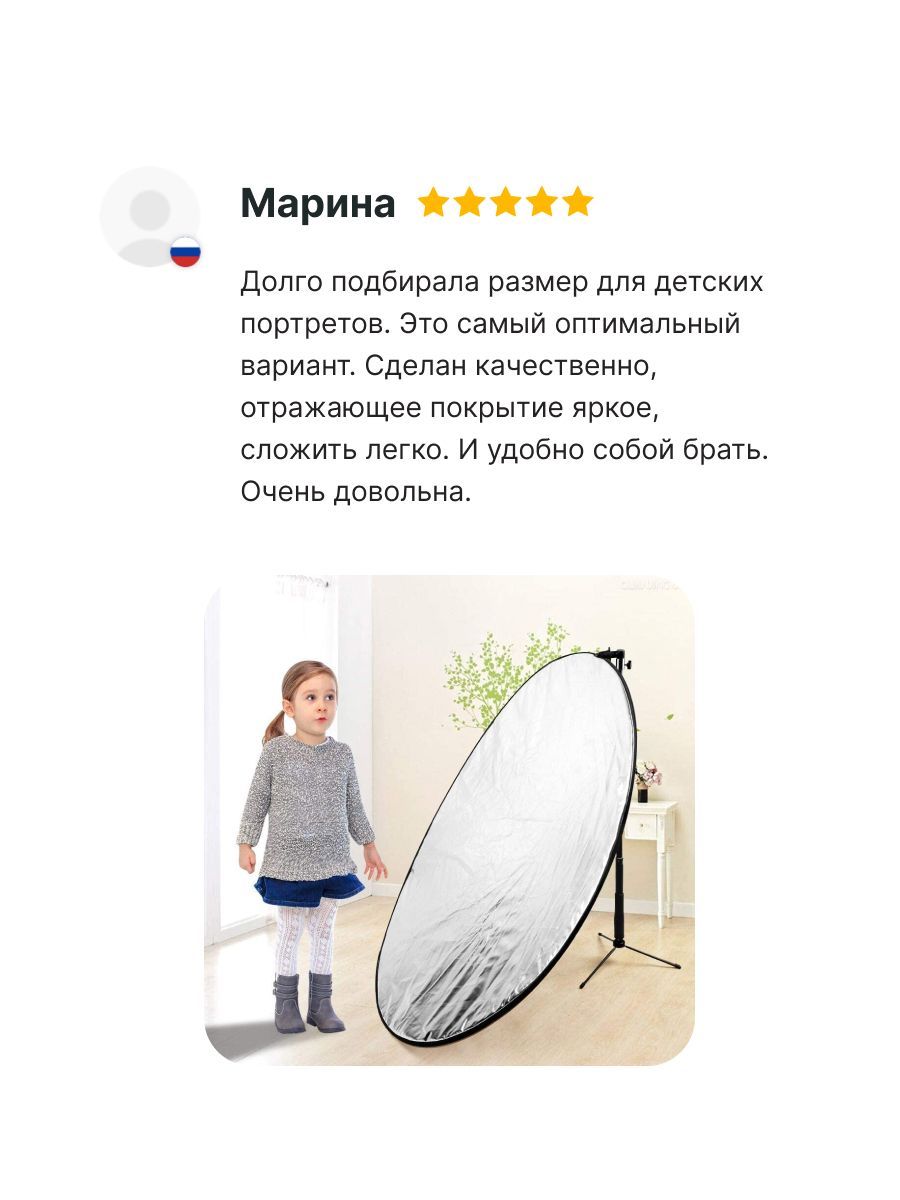 Светоотражатель Raylab - это один из самых важных инструментов для создания прекрасного освещения в фотографии. Он используется для направления, отражения и управления светом, чтобы создать идеально освещенные фотографии. Отражатель света может быть использован для создания мягкого света, для осветления тени, для изменения цвета света, для создания глубины и многого другого (предметная съемка, портретная съемка, фэшн съемка, студийная съемка и другие виды). Когда вы используете отражатель для фото, вы можете контролировать свет, который падает на объект фотографии. Вы можете отразить свет на объекте, чтобы создать мягкие тени, которые позволяют создать трехмерный эффект. Вы можете также использовать отражатель для направления света на объект, чтобы создать яркое и ясное освещение. Полупрозрачный (рассеиватель) применяется для уменьшения яркости и смягчения света, падающего на снимаемый объект. Он также может работать на отражение, при этом он дает очень мягкую, приглушенную подсветку объекта. Белый используется для подсветки теневой стороны объекта, не меняет цветовую температуру отражаемого света. Удобен при съемке видео. Серебристый дает более яркий и жесткий отраженный свет, в сравнении с белым отражателем. Незаменим в облачную погоду. Золотой по интенсивности сопоставим с серебряным отражателем, но в отличие от последнего придает отраженному свету теплый оттенок. Используется для имитации солнечного света. Черная сторона отражателя используется для исключения объекта из зоны освещенности. Также позволяет добавить теней на снимаемый объект при чрезмерно равномерном освещении сцены. Отражатели Raylab легки и удобны в сборке, и устойчивы к износу. Наш светоотражатель для фото имеет прочный и легкий каркас, который покрыт двусторонней тканью. Это позволяет использовать его как в помещении (например, фуд съемка), так и на открытом воздухе. Он имеет различные цветовые стороны, включая белый, отражатель серебристый, отражатель золото и черный, которые позволяют настроить свет в зависимости от ваших потребностей. Это значит, что вы можете выбрать цвет, который наилучшим образом подходит для фотосессии. Наш светоотражатель для фотосъемки легко помещается в любой фотосумке или рюкзак, что делает его удобным сопровождающим для любого фотографа в любых условиях. Он также очень легок в использовании, поэтому даже начинающий фотограф может легко настроить свет для создания идеального освещения для фото. Помимо этого, наш фотоотражатель является экономичным решением для создания идеального освещения. Он позволяет создавать идеальное освещение без необходимости приобретения дорогостоящего оборудования. В целом, оборудование для фото и оборудование для видео Raylab - это незаменимый инструмент для любого фотографа, который хочет создать профессиональные и красивые фотографии. Отражатель предоставляет вам полный контроль над светом, который падает на объект, позволяет вам создавать идеальное освещение и является удобным сопровождающим для любого фотографа.