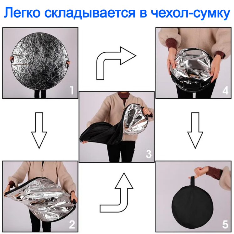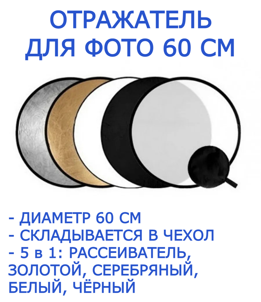 Отражатель рассеиватель для фотосъемки, рефлектор круглый 60 см 5 в 1, отражатель для фото