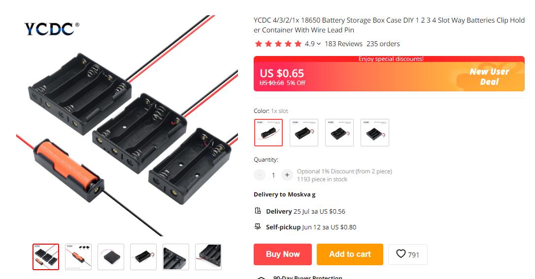 Отсеки для аккумуляторов 18650 (на 1, 2, 3, 4 аккумулятора)