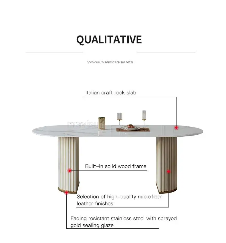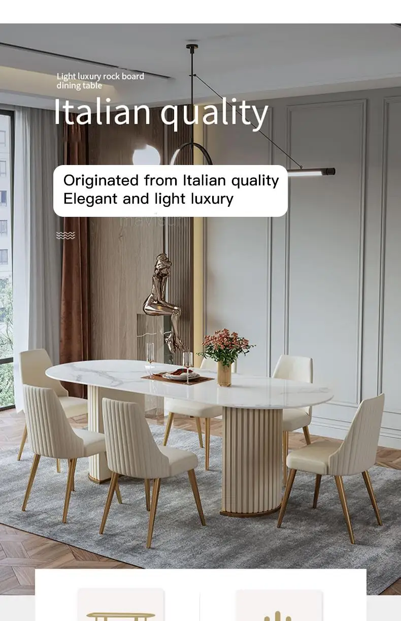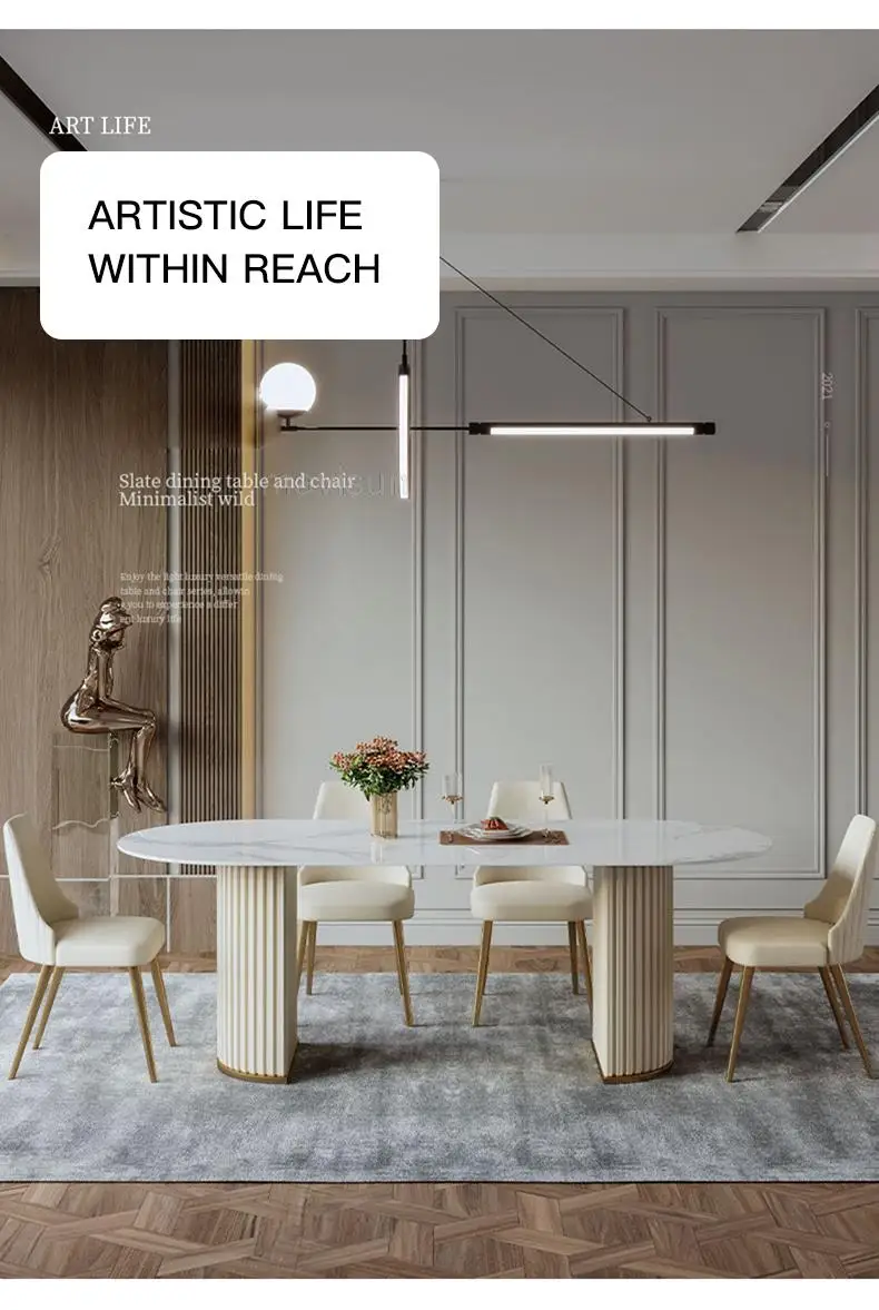 Овальный обеденный стол, лаконичный дизайн, Золотая подставка, роскошная мебель, глянцевая каменная доска, домашний декор, кухонный стол и стулья цвета слоновой кости