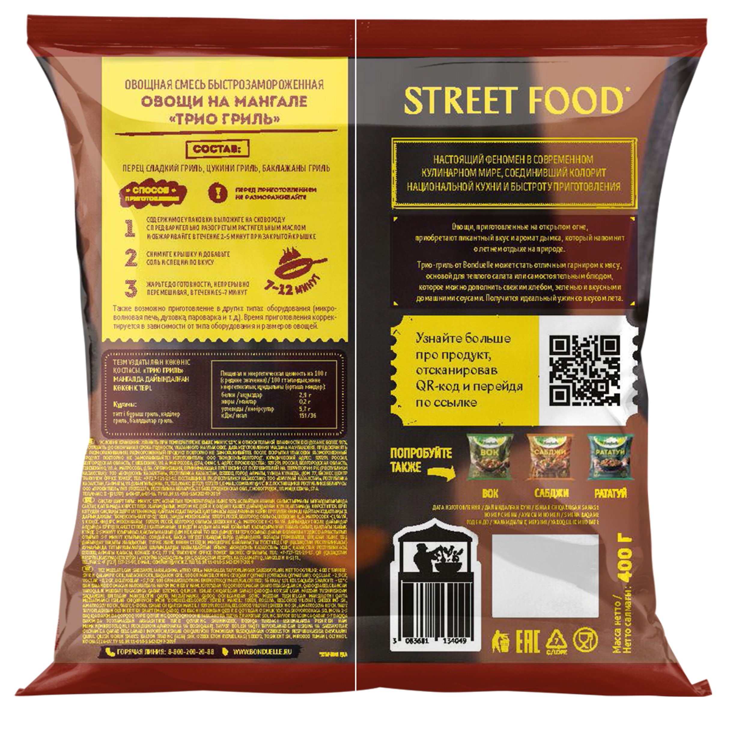 Описание: Настоящий феномен в современном кулинарном мире, соединивший колорит национальной кухни и быстроту приготовления. Овощи, приготовленные на открытом огне, приобретают пикантный вкус и аромат дымка, который напомнит о летнем отдыхе на природе. Трио Гриль от Bonduelle может стать отличным гарниром к мясу, основой для теплого салата или самостоятельным блюдом, которое можно дополнить хлебом, зеленью и вкусными домашними соусами. Получится идеальный ужин со вкусом лета!