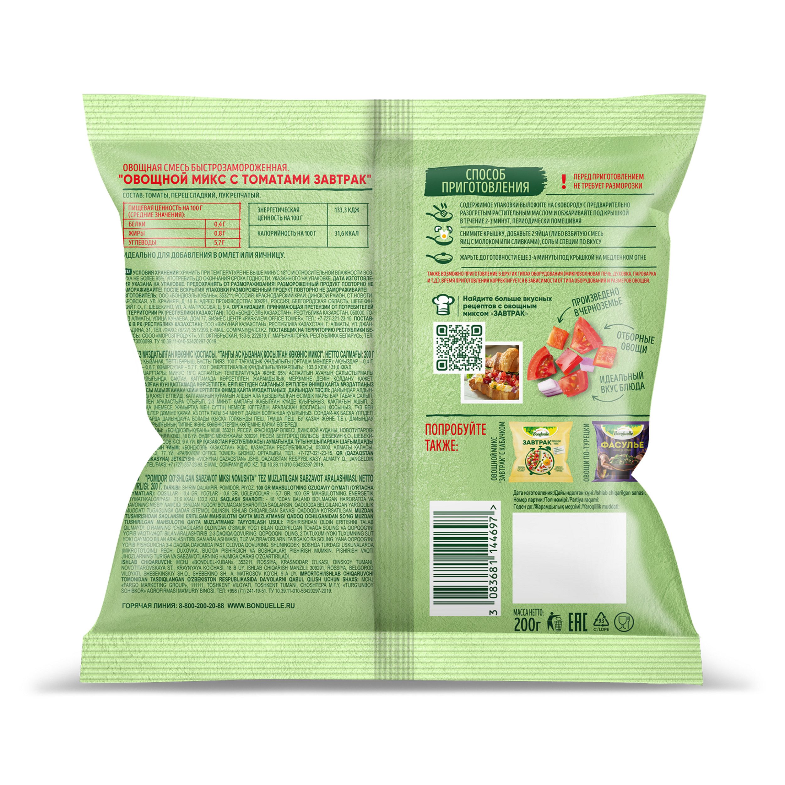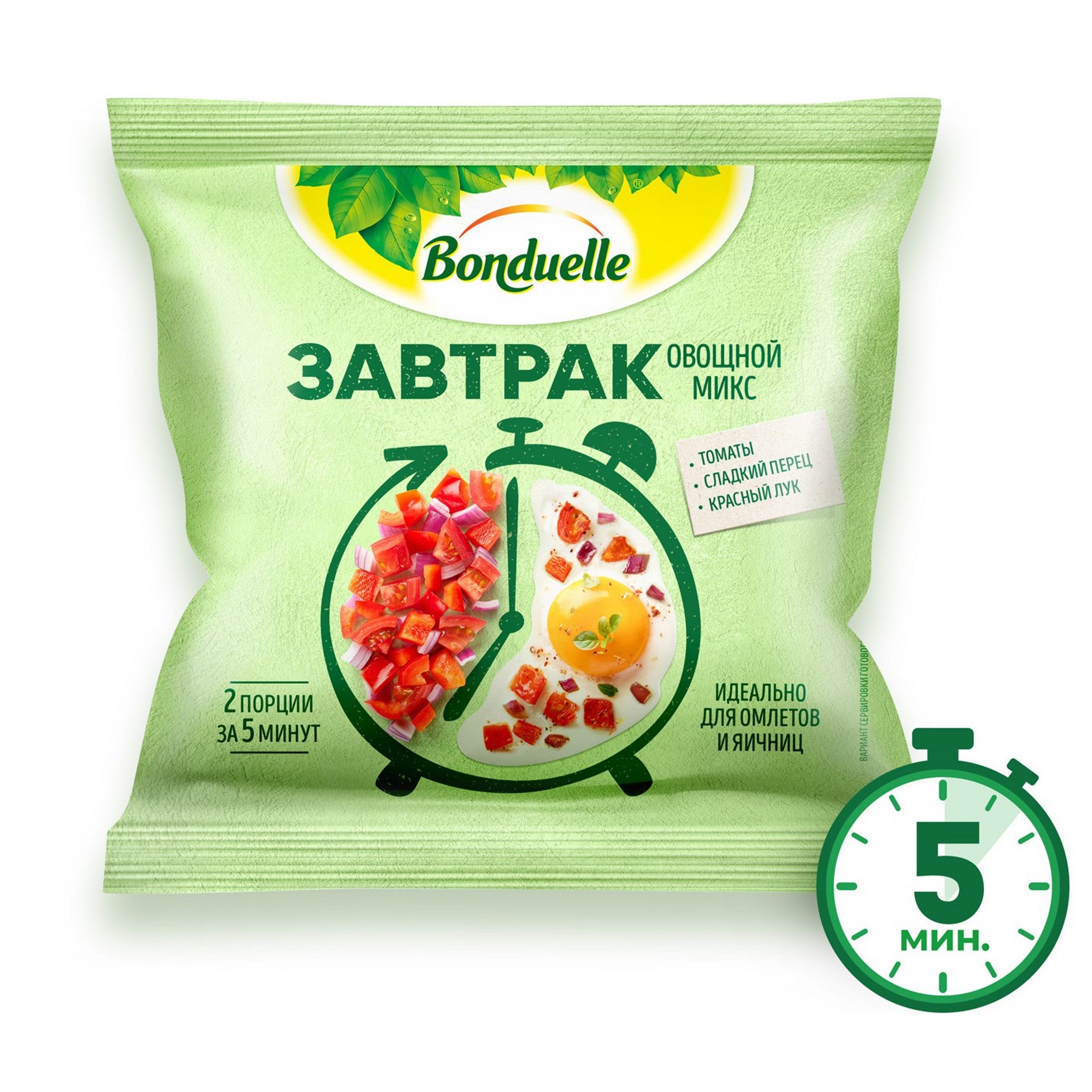 Овощи замороженные Bonduelle Завтрак с томатами, смесь для омлета и яичницы, 200 г
