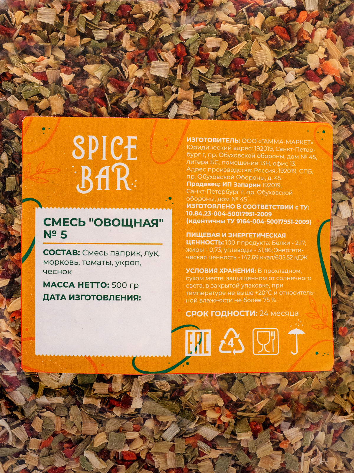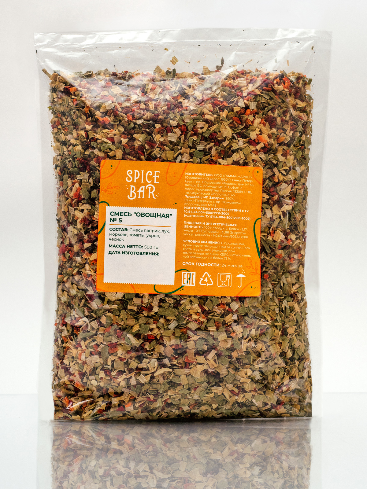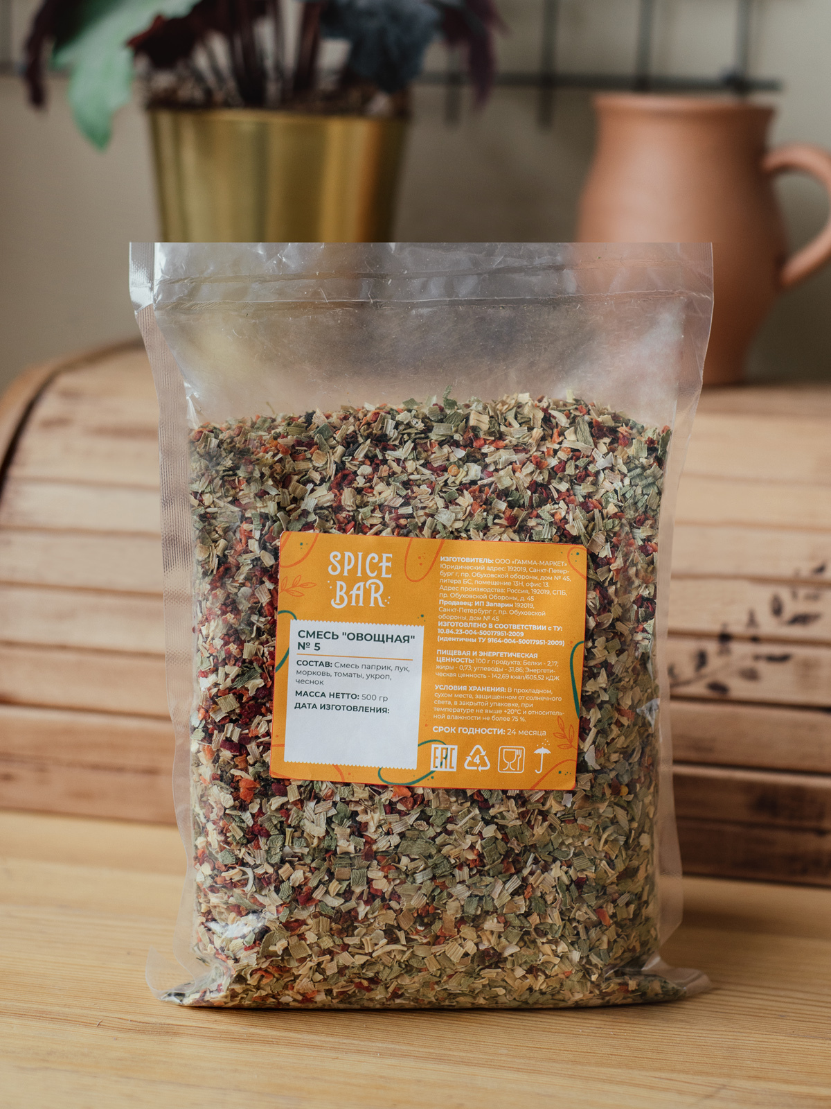 Рекомендуем использовать 8 - 15 г на 1кг сырья. Преимущества продукта: полностью натуральный состав без добавления консервантов, ароматизаторов и стабилизирующих добавок, относится к продукту премиум-качества. Смесь овощей и сушеной зелени - это ароматная универсальная приправа, которая является натуральным продуктом. В ней нет соли и глутамата натрия, она великолепно сочетается с другими специями и приправами.