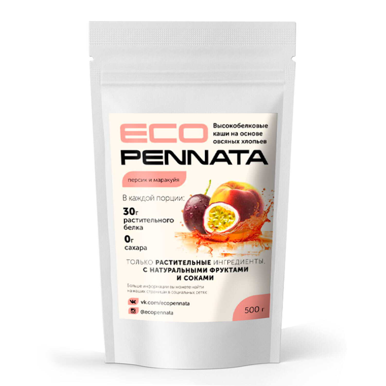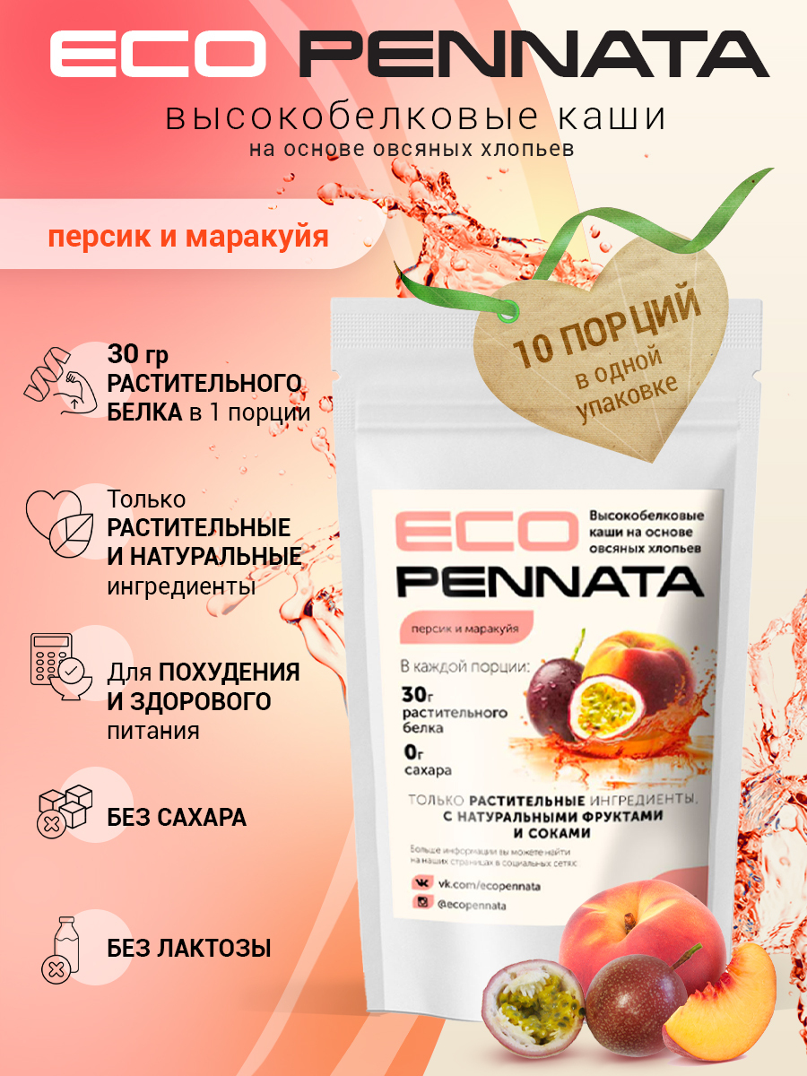 EcoPennata – это натуральные каши в состав которых входят сушенные яблоки без сахара, растительный рисовый протеин обогащённый аминокислотами, пребиотическая пищевая клетчатка и натуральные сублимированные соки.