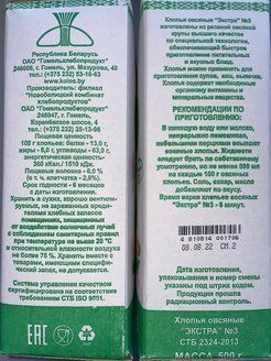 Описание: Овсяная каша быстрого приготовления "Экстра" №3, Производится с 1938 года в г. Гомеле, Беларусь.Изготовлены из резаной овсяной крупы высокого качества по специальной технологии, обеспечивающей быстрое приготовление питательных и вкусных блюд. Хлопья можно применять для приготовления супов, каш, выпечки. Хлопья содержат необходимые организму витамины и минеральные вещества.Вес 1 упаковки 500 гр. Геркулес делают из резаных и расплющенных зерен, из зерен получаются тонкие хлопья которые очень быстро развариваются. Хлопья можно применять для приготовления супов, каш, выпечки. Овсянка содержит необходимое организму витамины и минеральные вещества. Овсяные хлопья улучшают обмен веществ, нормализуют деятельность нервной системы, улучшают работу печени, и повышают иммунитет. Быстрый и полезный завтрак для взрослых и детей. Хлопья овсяные "Экстра №3"- это полезная каша овсяная быстрого приготовления, которая идеально подходит для быстрых и полезных завтраков. Каша овсяная безмолочная содержит необходимые витамины и минеральные вещества для хорошего пищеварения и здорового питания. Хлопья для завтрака не содержат вредных добавок и ГМО. Овсяная каша изготовлена из резаной овсяной крупы высшего качества по специальной технологии, обеспечивающей быстрое приготовление питательных и вкусных блюд. Овсяные хлопья можно применять для приготовления супов, каш и выпечки. Рекомендации по приготовлению: В кипящую воду или молоко, непрерывно помешивая, небольшими порциями высыпают овсяные хлопья. Жидкости следует брать по собственному усмотрению, но не менее 500 мл на каждые 100 г овсяных хлопьев. Соль, сахар, масло добавляют по вкусу. Время варки хлопьев овсяных 5 минут. Овсяная каша годна в течение 6 месяцев с даты изготовления, указанной на упаковке.