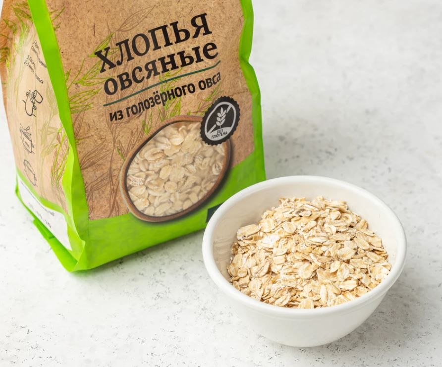 Овсяные хлопья без глютена, из голозерного овса, 375г, Россия/Овсяная каша без глютена/Здоровая еда
