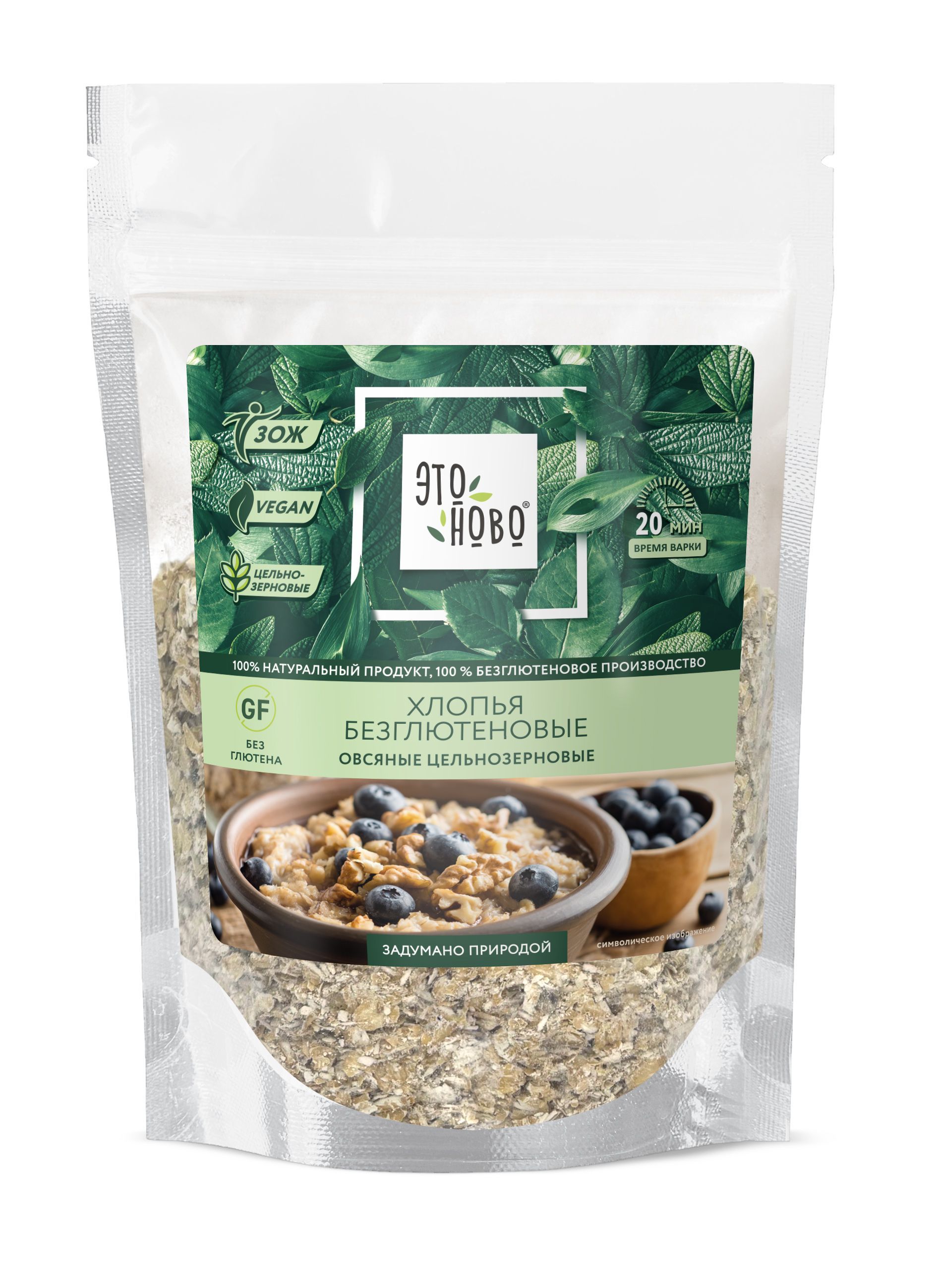 Овсяные хлопья для завтрака Этоново без глютена без сахара цельнозерновые, каша, овсянка 325 г