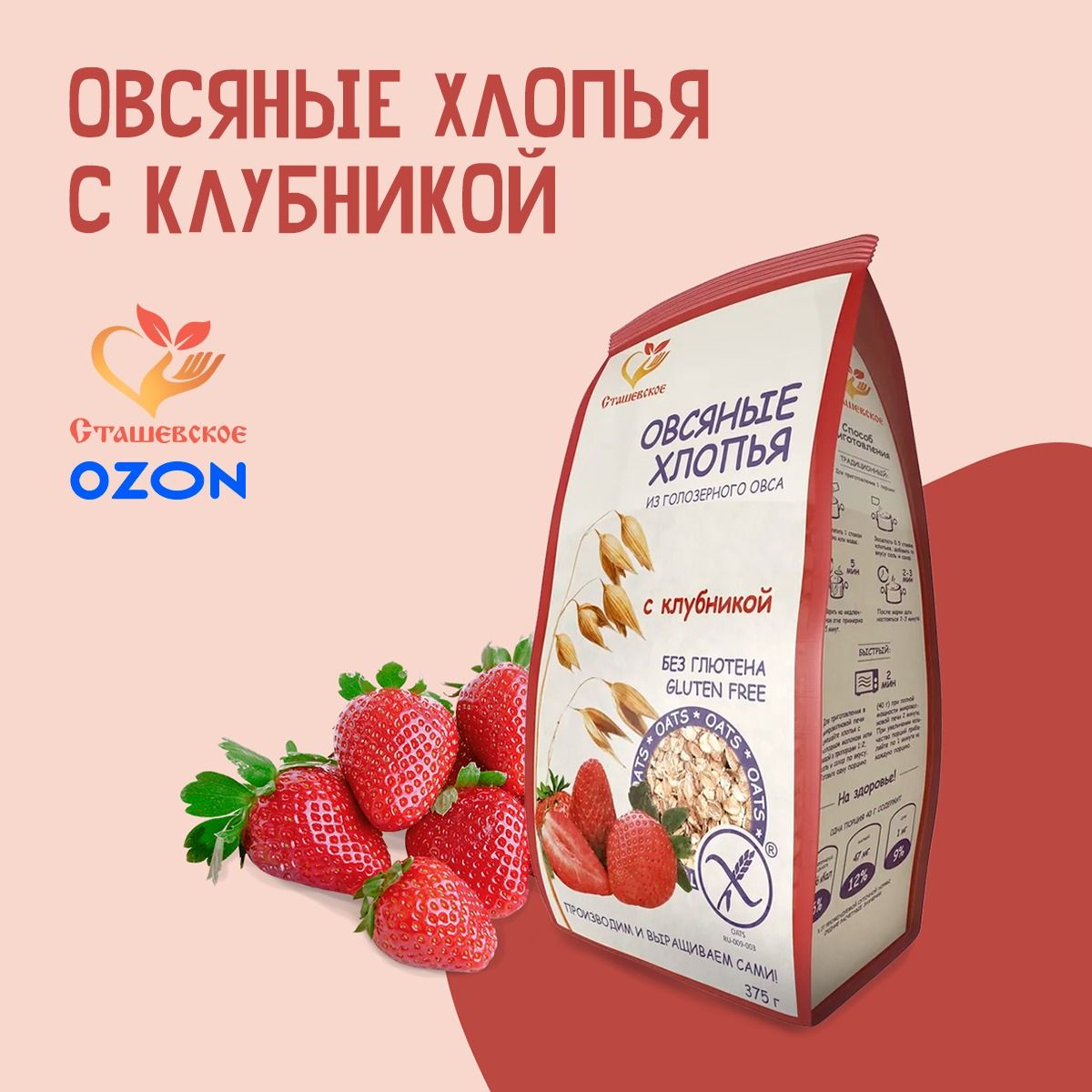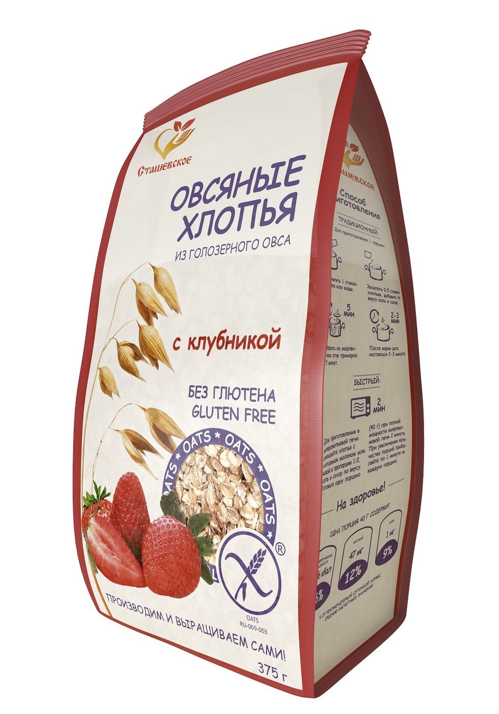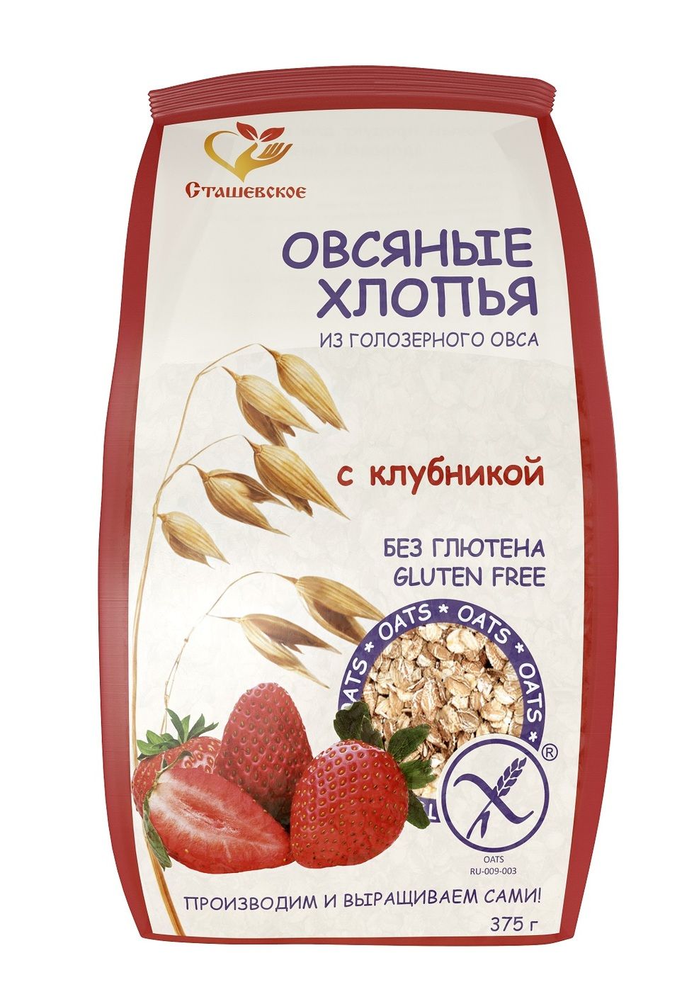 Овсяные хлопья из голозерного овса с клубникой без глютена "Сташевское"