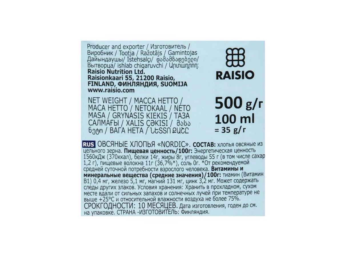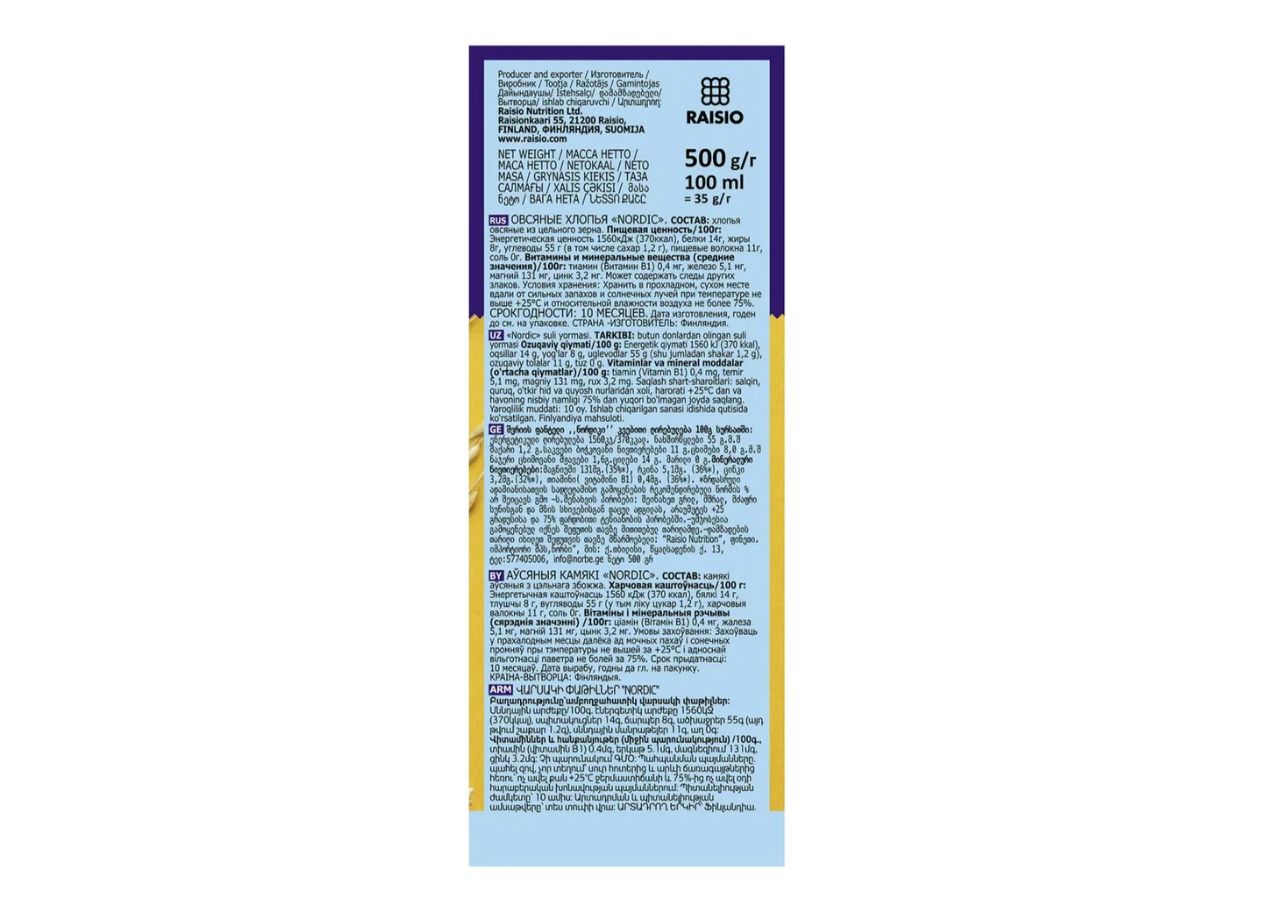 Хлопья овсяные NORDIC, 500г идеально подойдут для приготовления аппетитной каши на завтрак.
