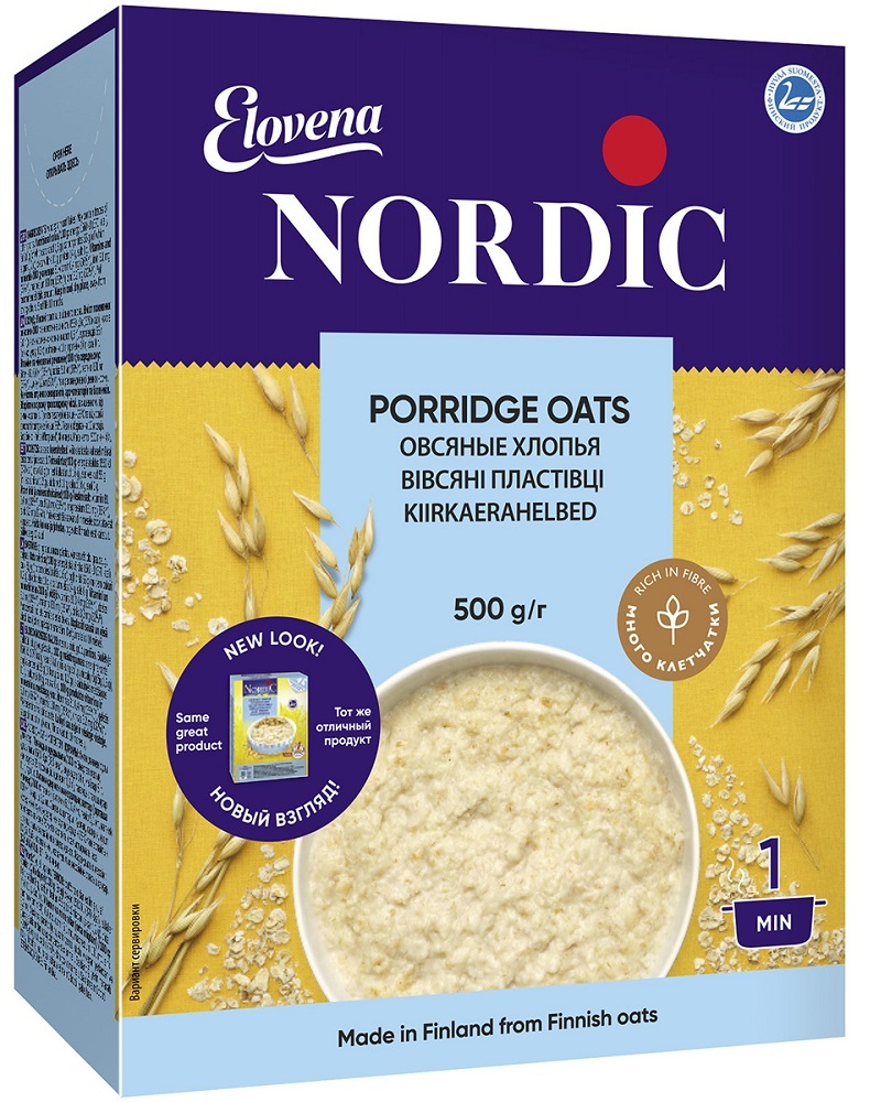 Овсяные хлопья Nordic Elovena Porridge Oats из цельного зерна, Финляндия, 500 г.