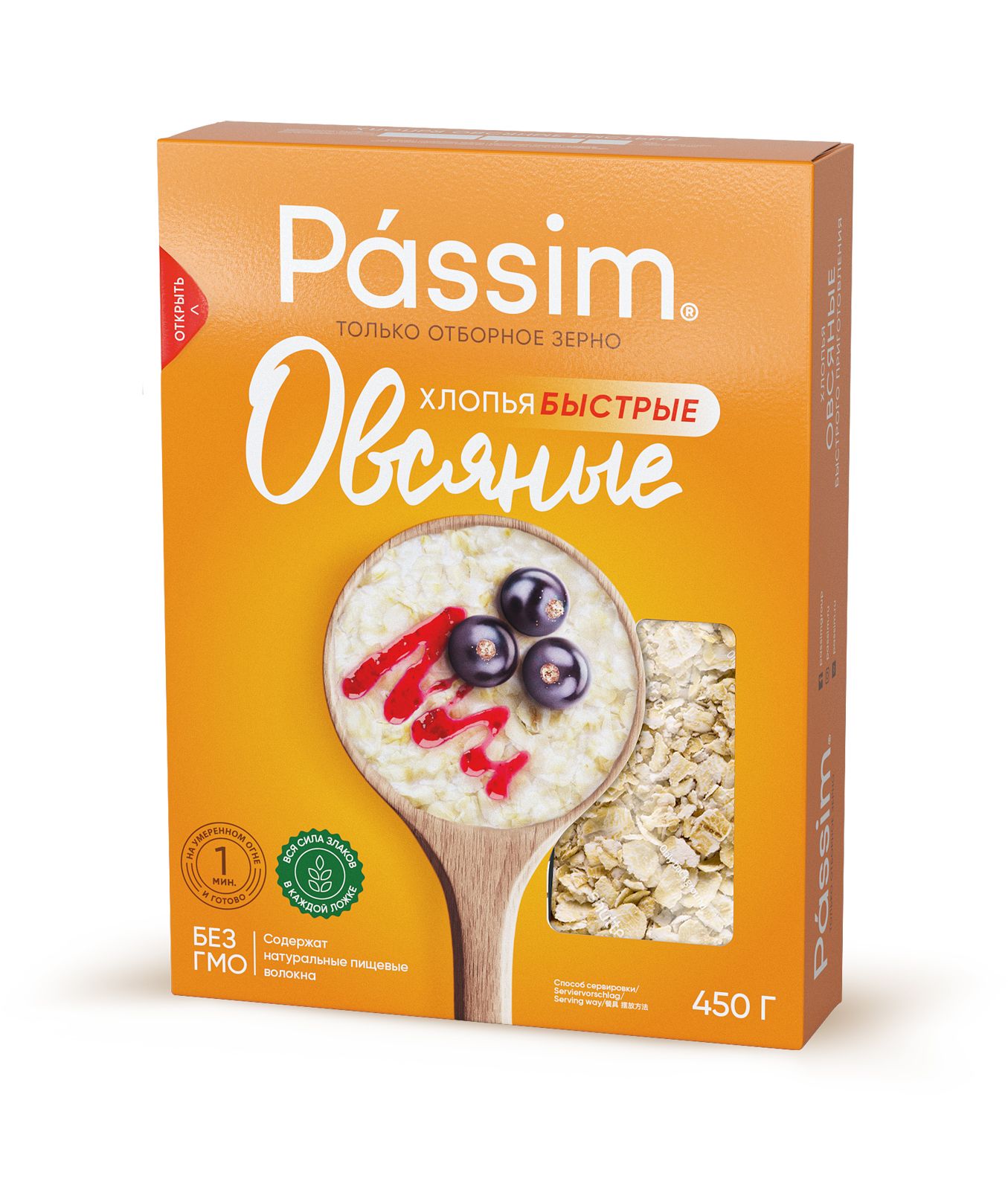 Овсяные хлопья PASSIM Быстрые 2 минуты варки, 450 г