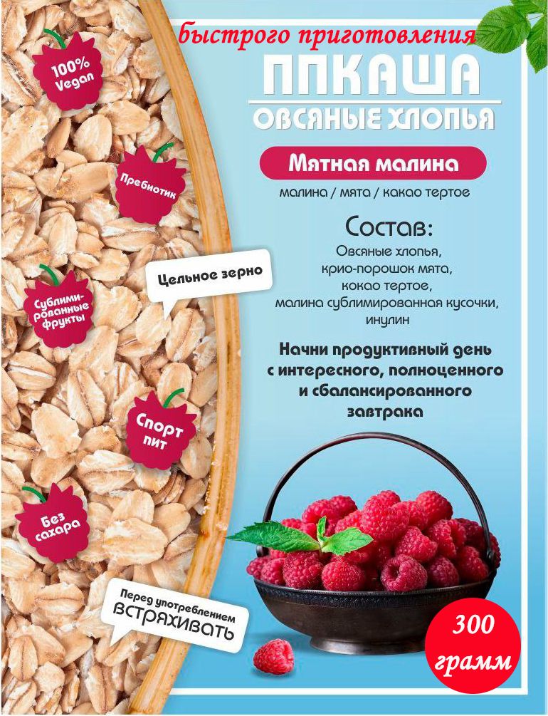ППКАША овсяные хлопья "Мятная малина", так же выпускается в фасовке 500гр, код товара 781538204.