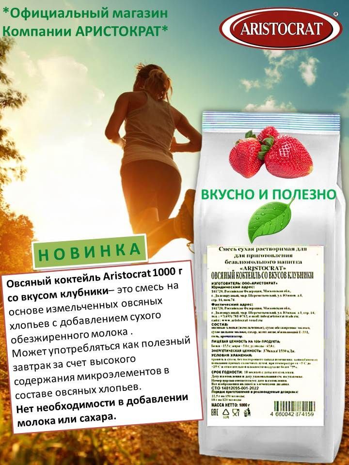 Описание: Овсяный коктейль Aristocrat 1000 г со вкусом клубники– это смесь на основе измельченных овсяных хлопьев с добавлением сухого обезжиренного молока и ароматизатора. Может употребляться как полезный завтрак за счет высокого содержания микроэлементов в составе овсяных хлопьев. Нет необходимости в добавлении молока или сахара. Взбейте коктейль капучинатором